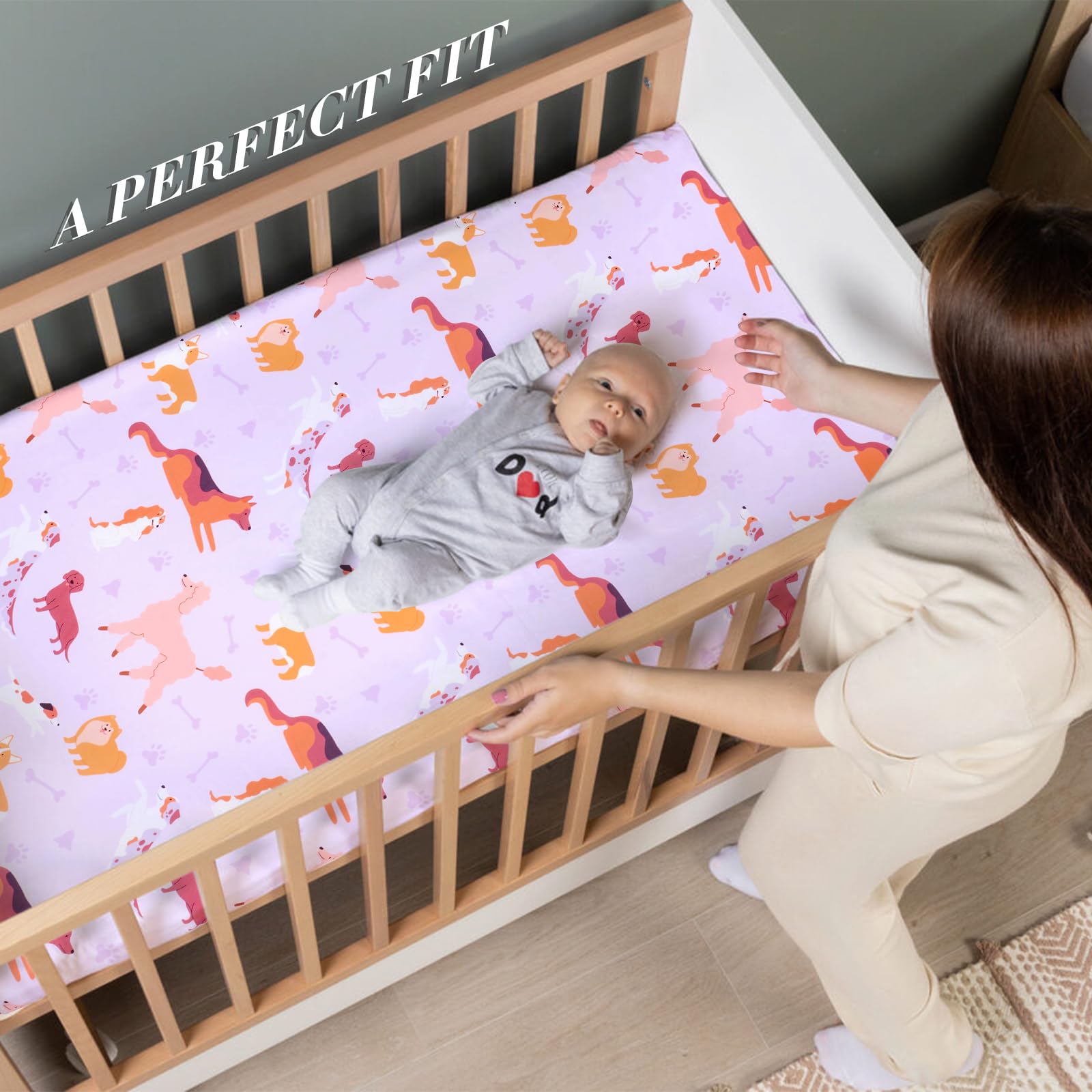 【IDEAL GIFT】:Specially designed for babies who love dogs,the crib sheet is desiged with Corgi,Teddy,Pomeranian,Dachshund and so on,the dog crib sheet is a perfect baby shower gift and the best Christmas,New Years,Birthday present for baby girls or boys. Complement on any nursery design.