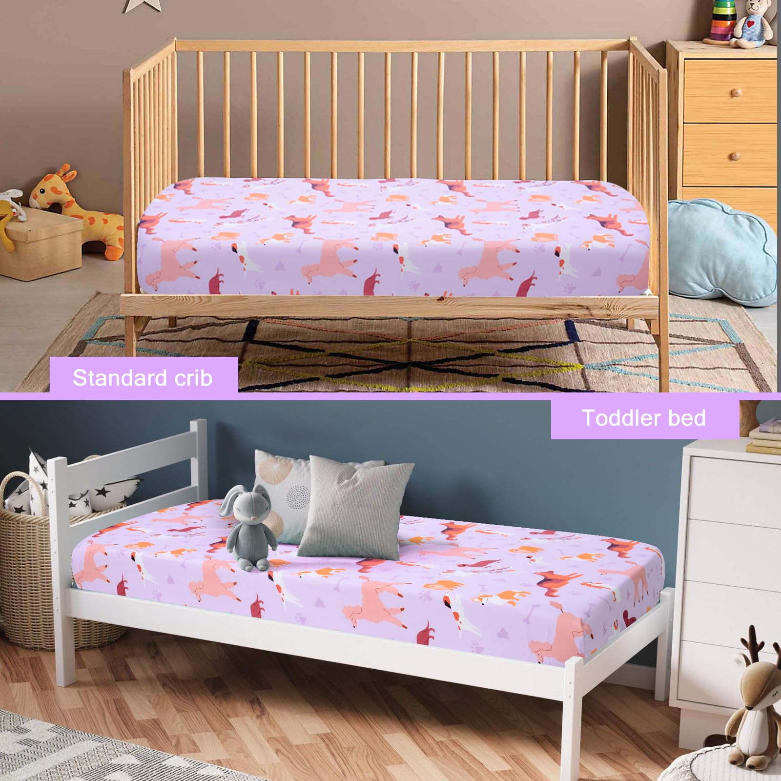 【SOFT CRIB SHEET】:UOMNY crib sheet is made of soft microfiber. Besides the purple dog fitted crib sheets with a smooth surface and comfortable touch.Your little one will fall in love with this comfortable and soft fitted sheet which makes her(him) easier to fall asleep.