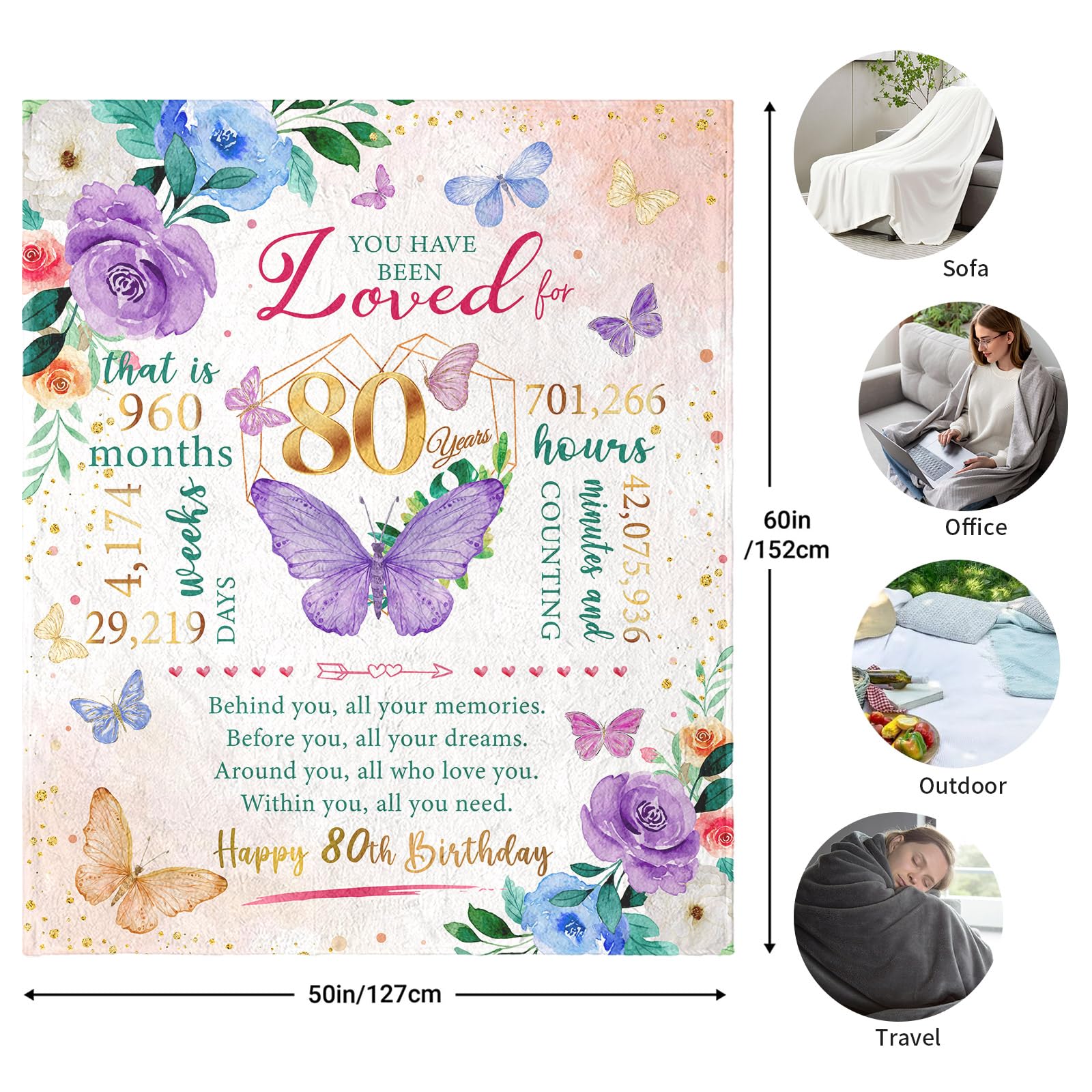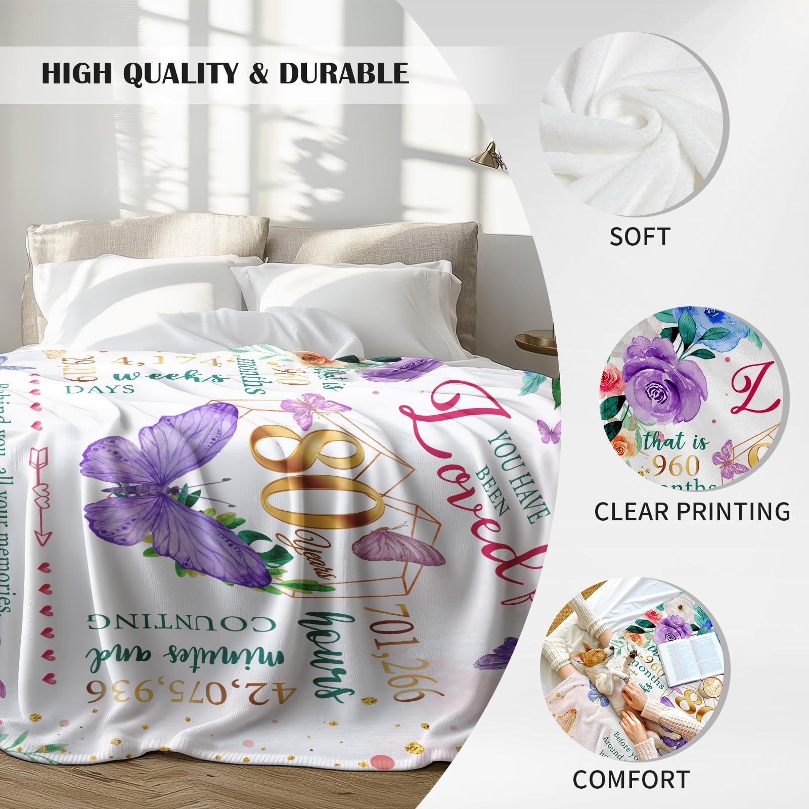 PREMIUM MATERIAL & SUITABLE SIZE: The 80th birthday blanket is made of high-grade flannel, such as a soft handle, and brilliant color. Super durable, and soft. The birthday blanket measures 60"x50", suitable size for adult women.