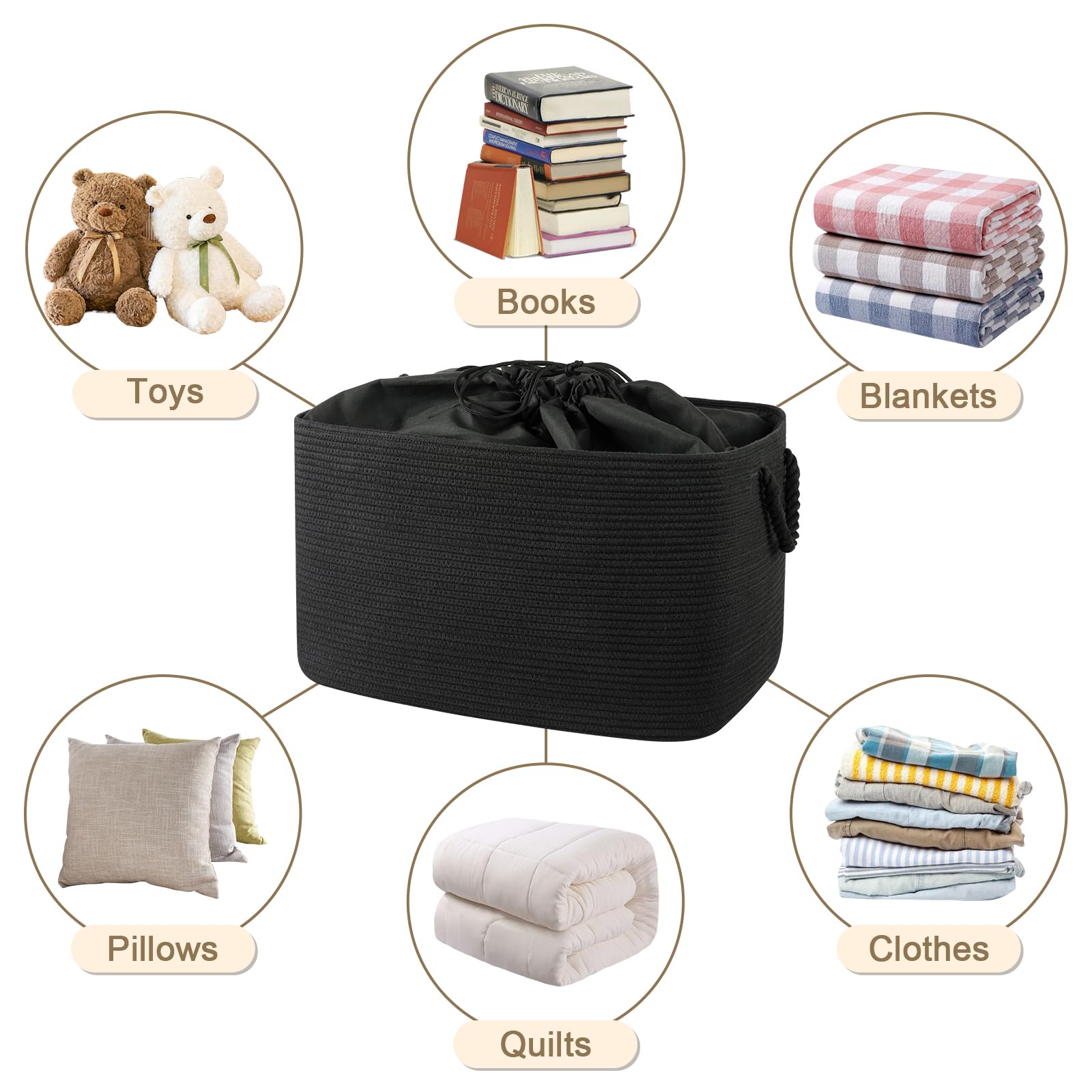 Dustproof & Foldable: The toy storage organizer with drawstring lid, which can close the bins tightly and keep your items away from dust, open the lid can also be used as an open storage boxes, when not in use, allowing you to fold it flat, save space and easy to store or carry