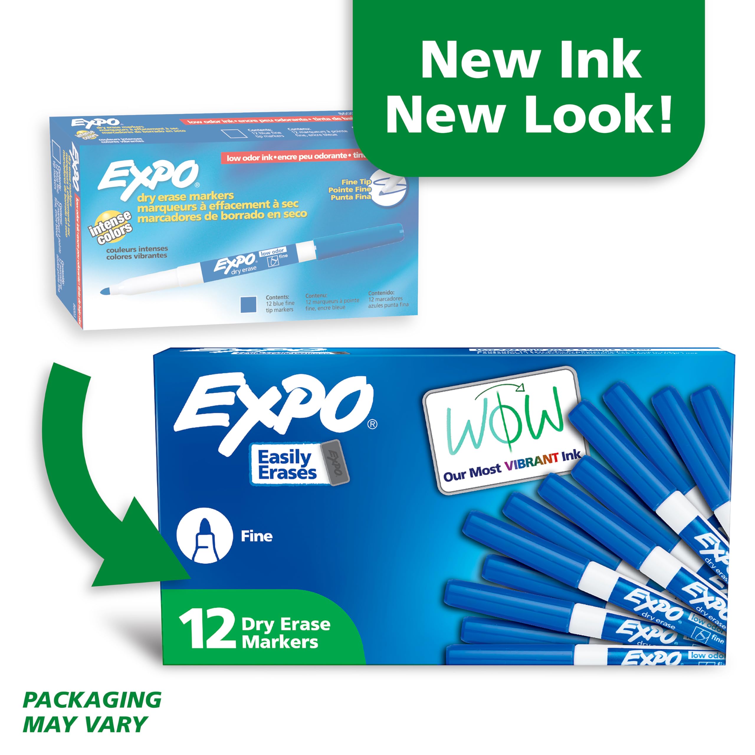 Capture ideas, share information, and organize life with vivid EXPO Dry Erase Markers! Now more vibrant than ever, this collection of EXPO markers helps everything come across clearly—from big ideas to fine details. The presentation markers are made for the whiteboard and beyond with ink that pops on glass, acrylic, and other clear, non-porous surfaces. They’re perfect for planning, presentations, lessons, calendars, home organization, and more! Plus, the wide range of colors of these whiteboard markers add versatility and personalization to any of your marking; you’ll be able to accent with a colorful doodle or sketch if you’re a teacher or parent! With an EXPO eraser or dry cloth, the ink erases cleanly and easily, so there’s little pause in any brainstorm session. And the low odor markers are great for classrooms, offices, and homes!
