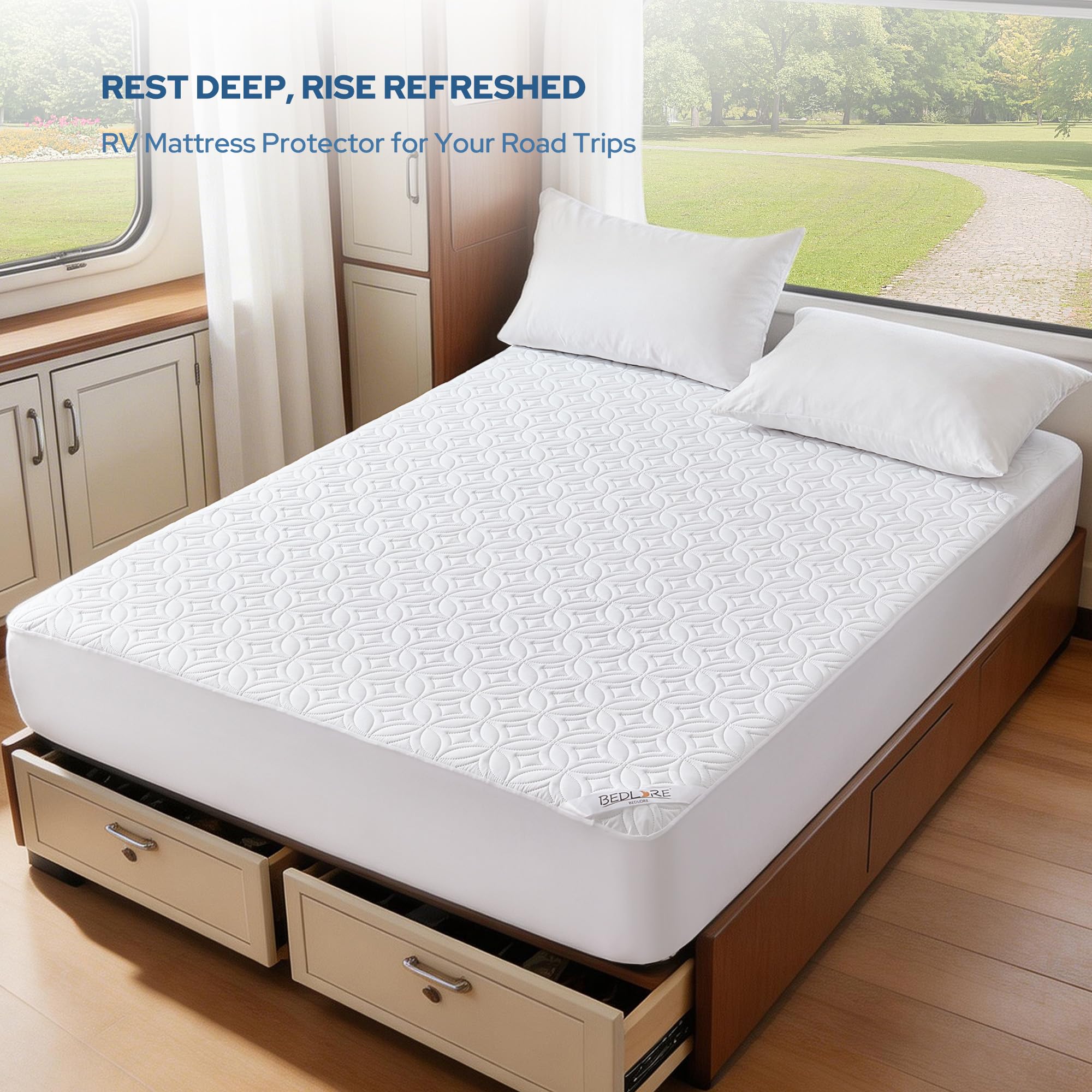 Ultra-Soft & Noiseless: Experience luxuriously soft, breathable comfort. The noiseless RV queen mattress protector fabric ensures peaceful sleep, even when you move
