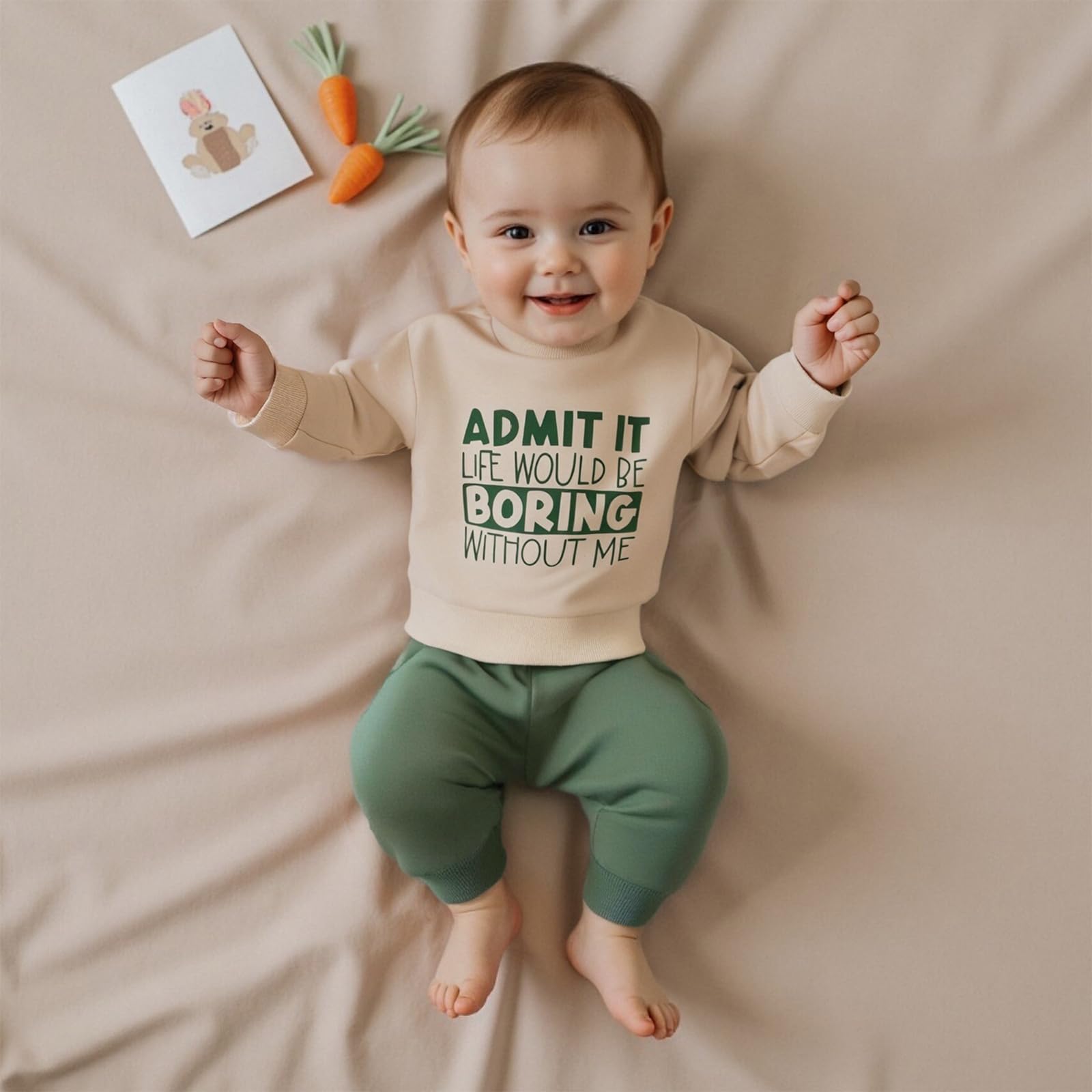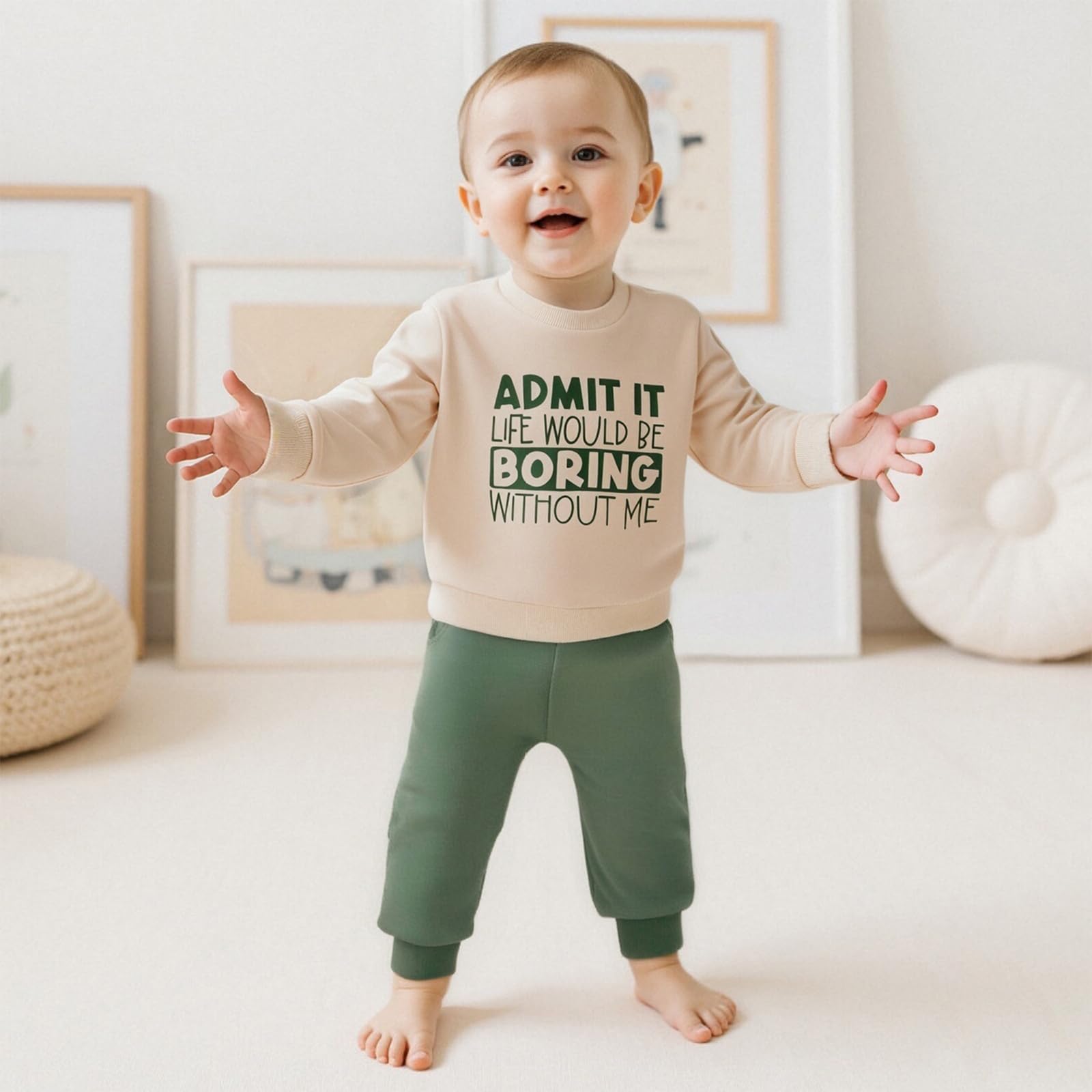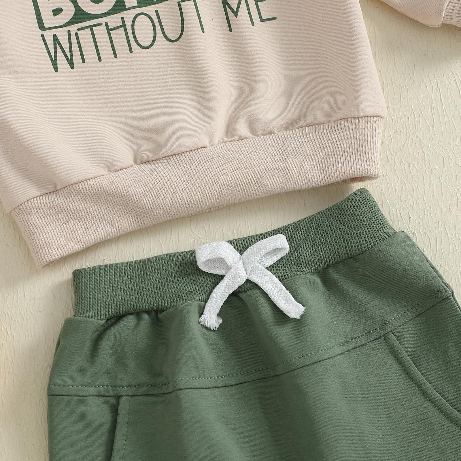 Design: Infant baby boy 2Pcs clothes set, long sleeve, round neck, letter print pullovers tops, matching with elastic waistband, rope front, side pockets pants. Easy to put on and take off. Designed as tops and trousers to ensure your boy cool all-day in summer. Can be worn as playwear or special occasion
