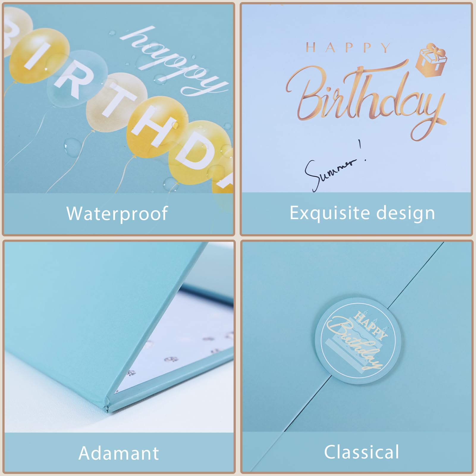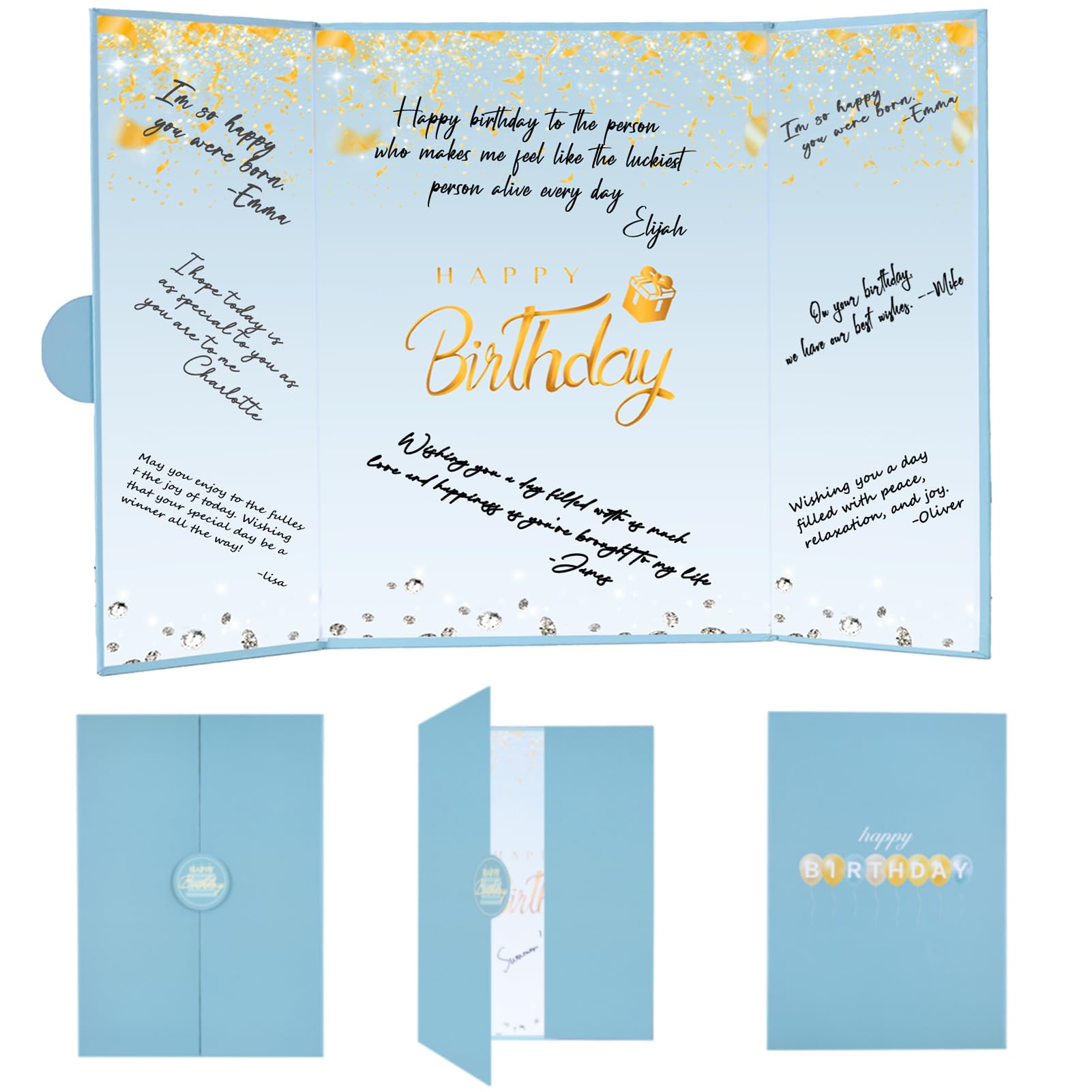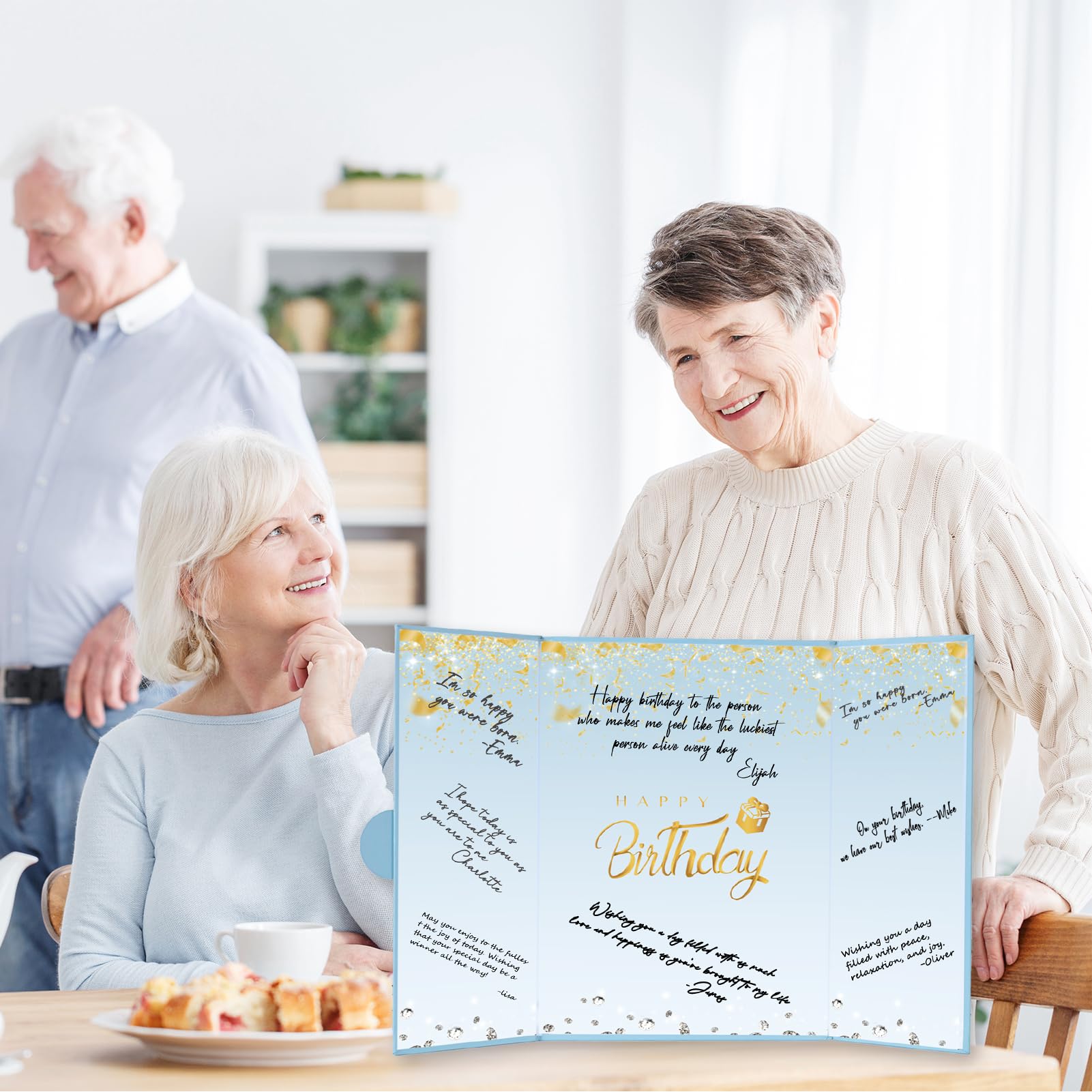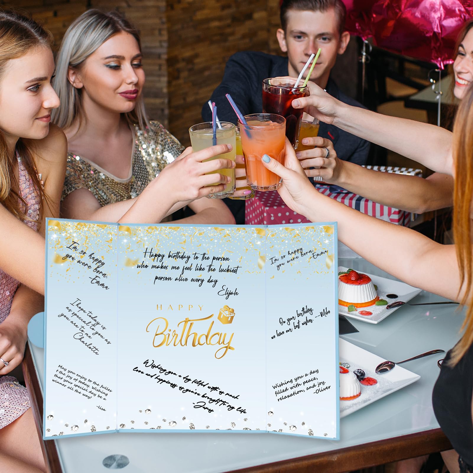 【Exquisite Design】- The dusty blue certificate has a badge on the cover, and the inside of the signature certificate is divided into three parts, the middle page is printed with the message 'Happy Birthday'. This birthday signature guest book can be opened directly and stand on the table. Tips: No pen.