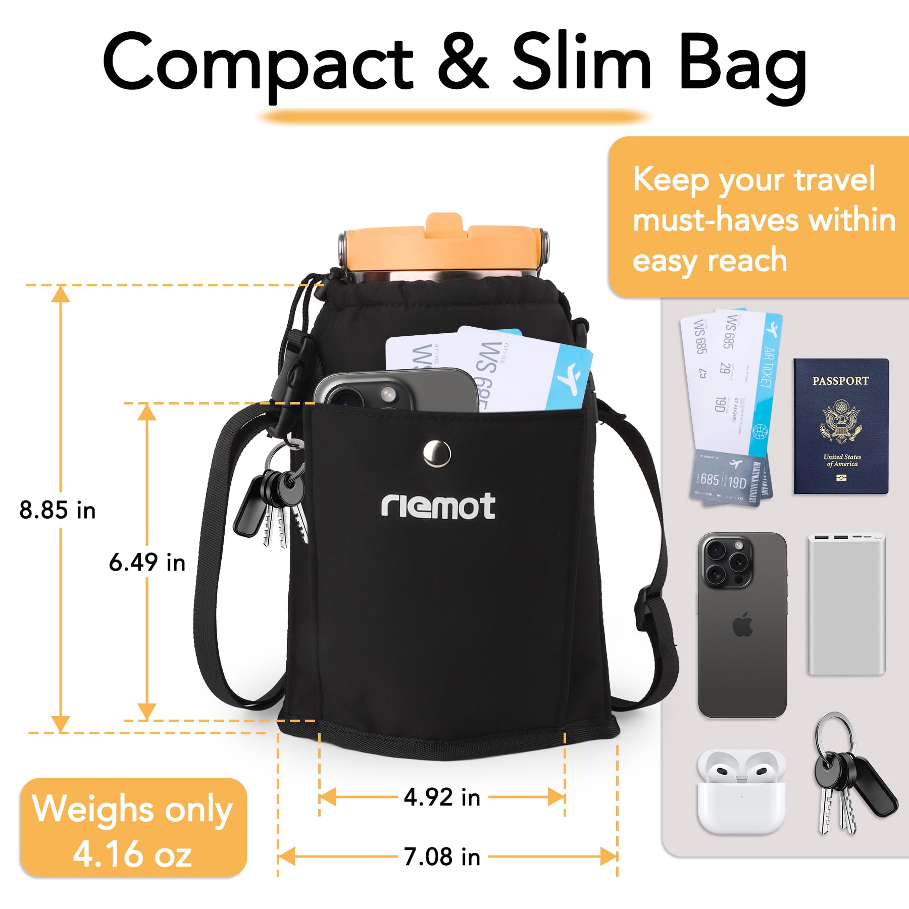 𝗗𝘂𝗿𝗮𝗯𝗹𝗲 & 𝗦𝗲𝗰𝘂𝗿𝗲 𝗪𝗮𝘁𝗲𝗿 𝗕𝗼𝘁𝘁𝗹𝗲 𝗖𝗮𝗿𝗿𝗶𝗲𝗿: Made of tear-resistant 600D polyester with reinforced stitching, water-repellent lining, adjustable and detachable strap, elastic drawstring closure and breathable mesh bottom, riemot tumbler carrier is built to keep your drinks securely in travel outdoor exploration, busy trips, exercises or daily commutes
