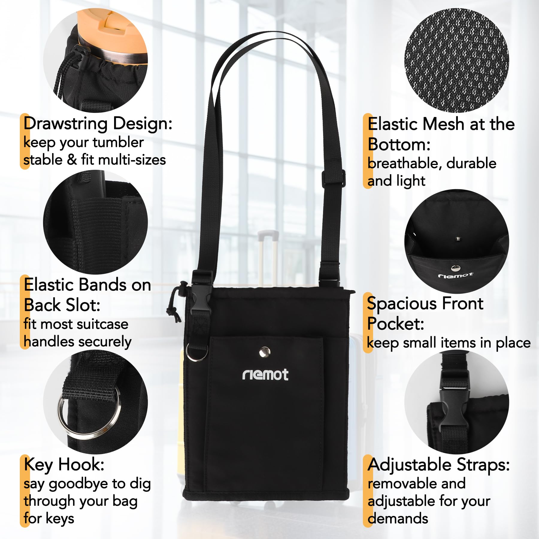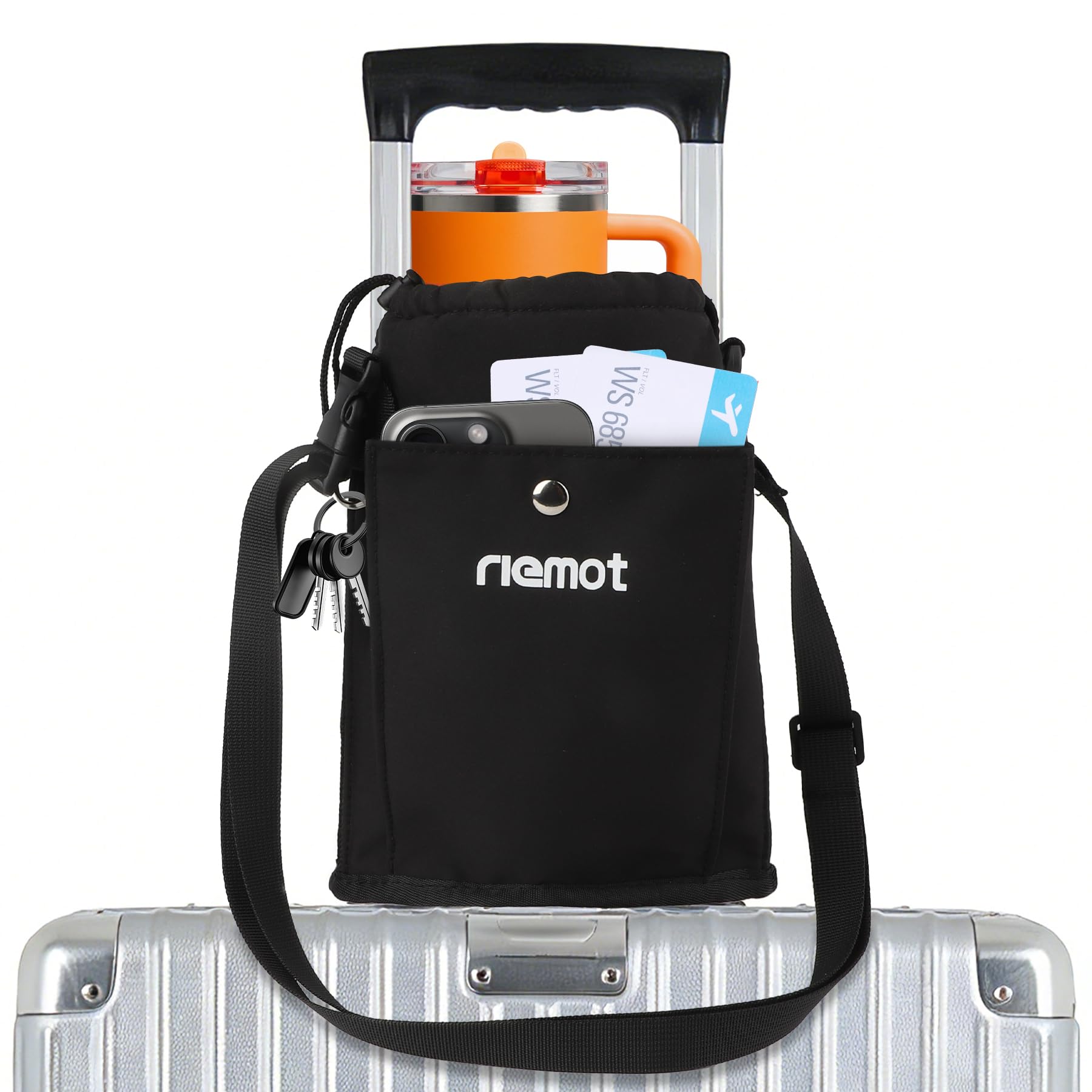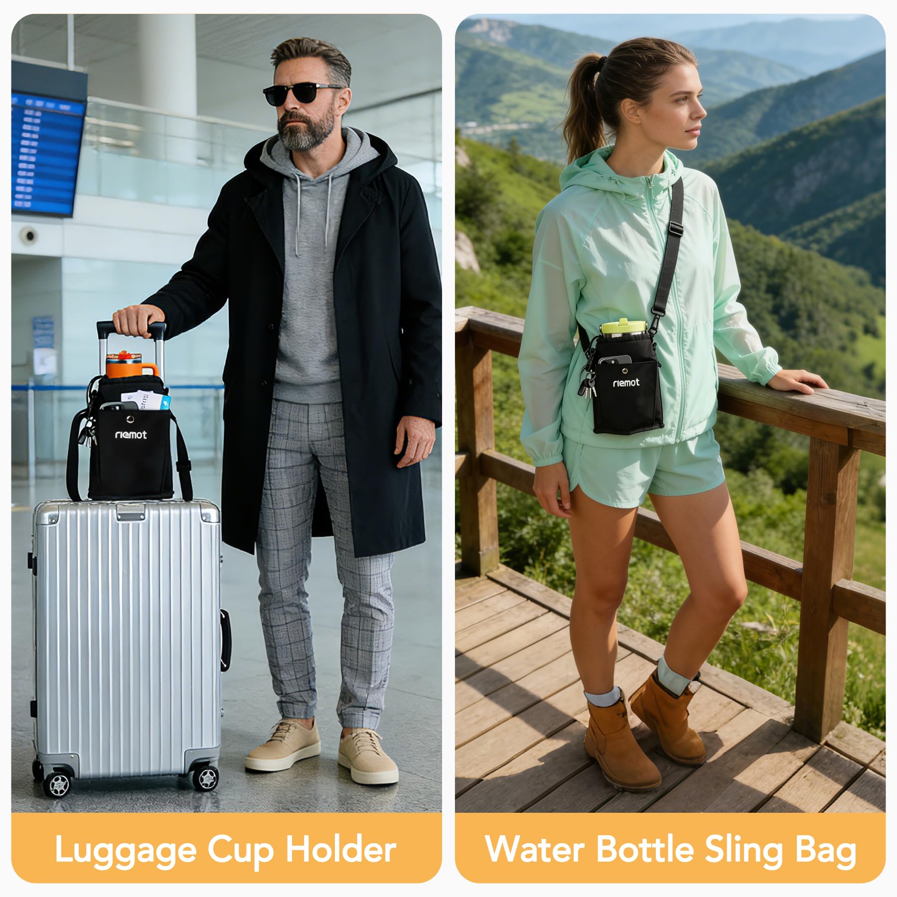 𝐅𝐫𝐞𝐞 𝐘𝐨𝐮𝐫 𝐇𝐚𝐧𝐝𝐬, 𝐆𝐨 𝐓𝐫𝐚𝐯𝐞𝐥! Traveling can be a drag, and you don't usually have a free hand to hold a drink especically with kids. With riemot 2-way use cup holder with strap, you can enjoy the trip now. This drink holder bag can be instantly converted from a hands-free crossbody sling bag to a secure luggage cup holder by easy installation. Perfect for keeping your water bottle accessible during flights or while exploring cities.