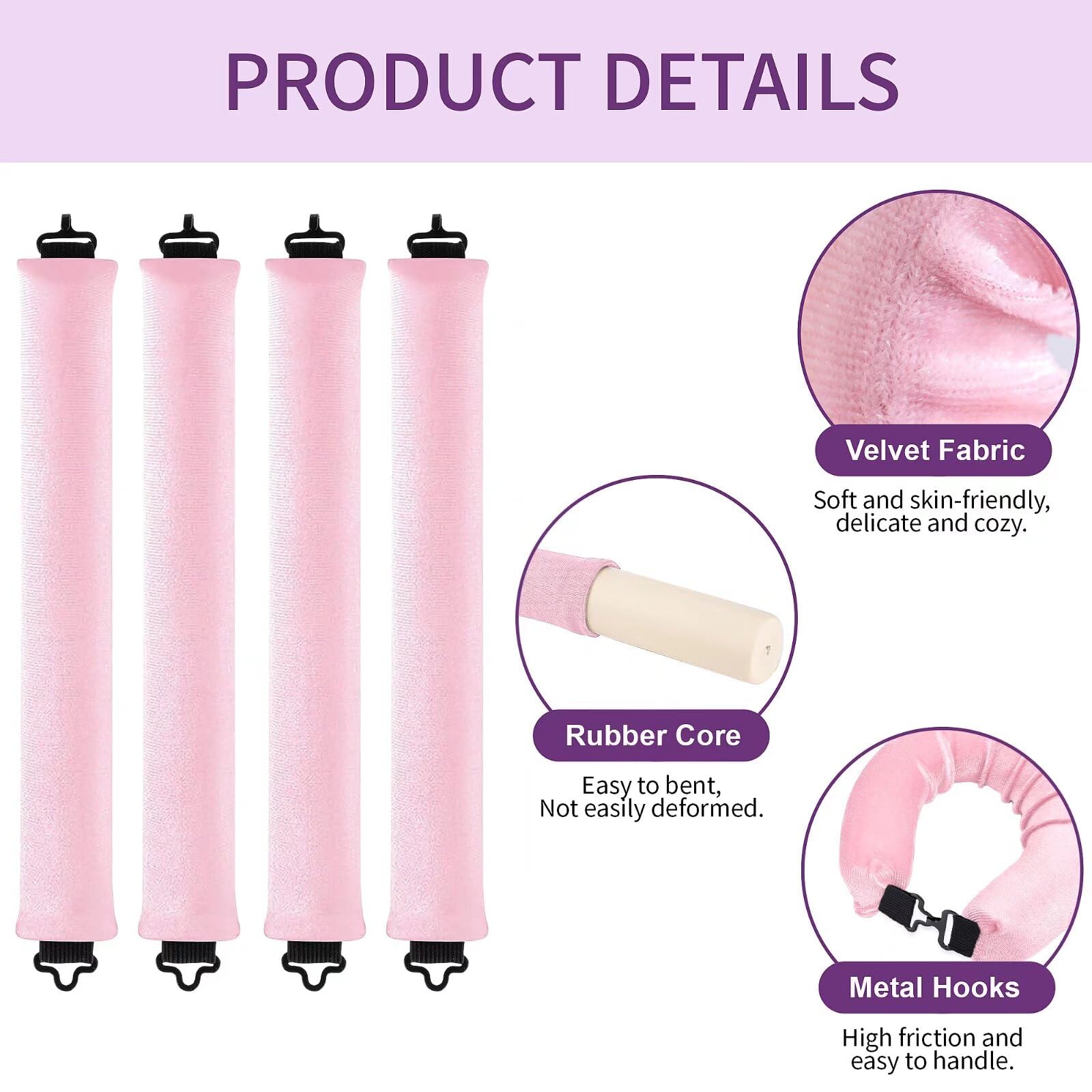 Secure Hold with Comfort: Crafted from soft velvet fabric, these overnight curlers firmly hold your hair in place, preventing any slipping or loosening. The flexible structure and hook design ensure a comfortable fit, allowing you to enjoy a peaceful night's sleep