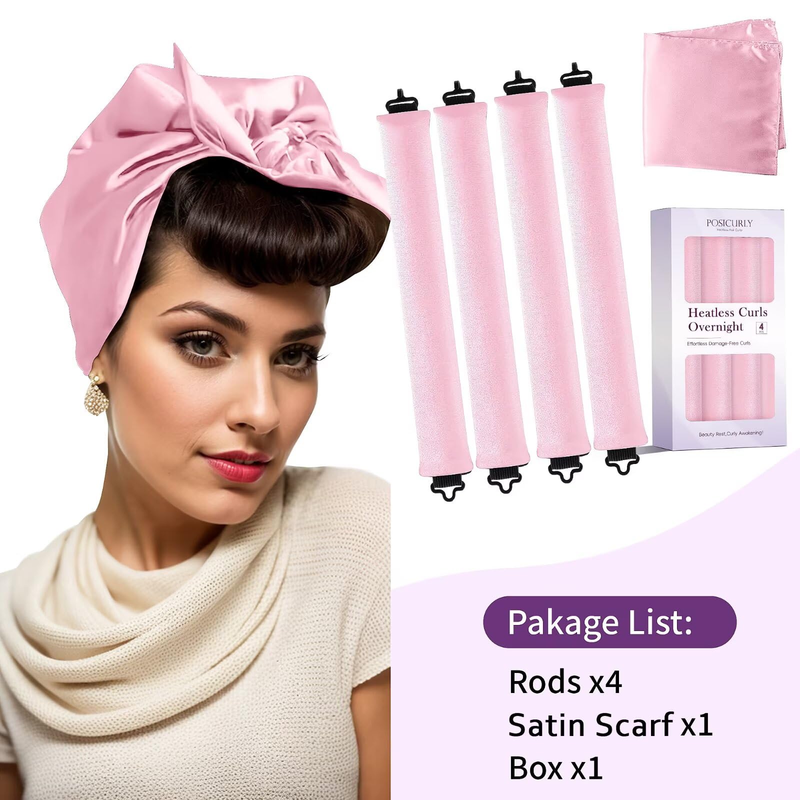 Convenient and User-Friendly: These no-heat curlers can be worn while sleeping or during the day. The included satin bonnet keeps everything in place, providing a seamless and effortless styling experience, ideal for achieving beautiful, heatless curls overnight