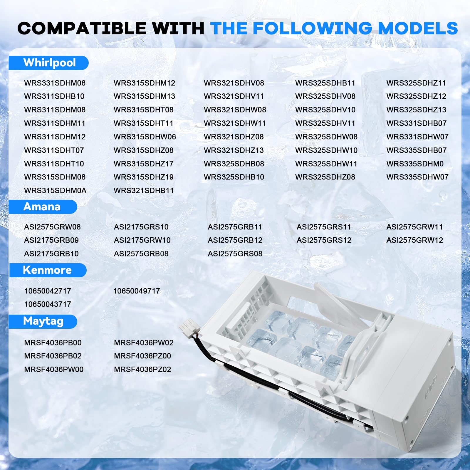 Multi-brand compatibility: Specifically engineered for whirlpool、 kenmore、amana and maytag refrigerators. Serves as a perfect replacement for part number W11700250. Direct replacement without additional modifications. Performance matches original equipment. Effortlessly resolves refrigerator ice-making faults.