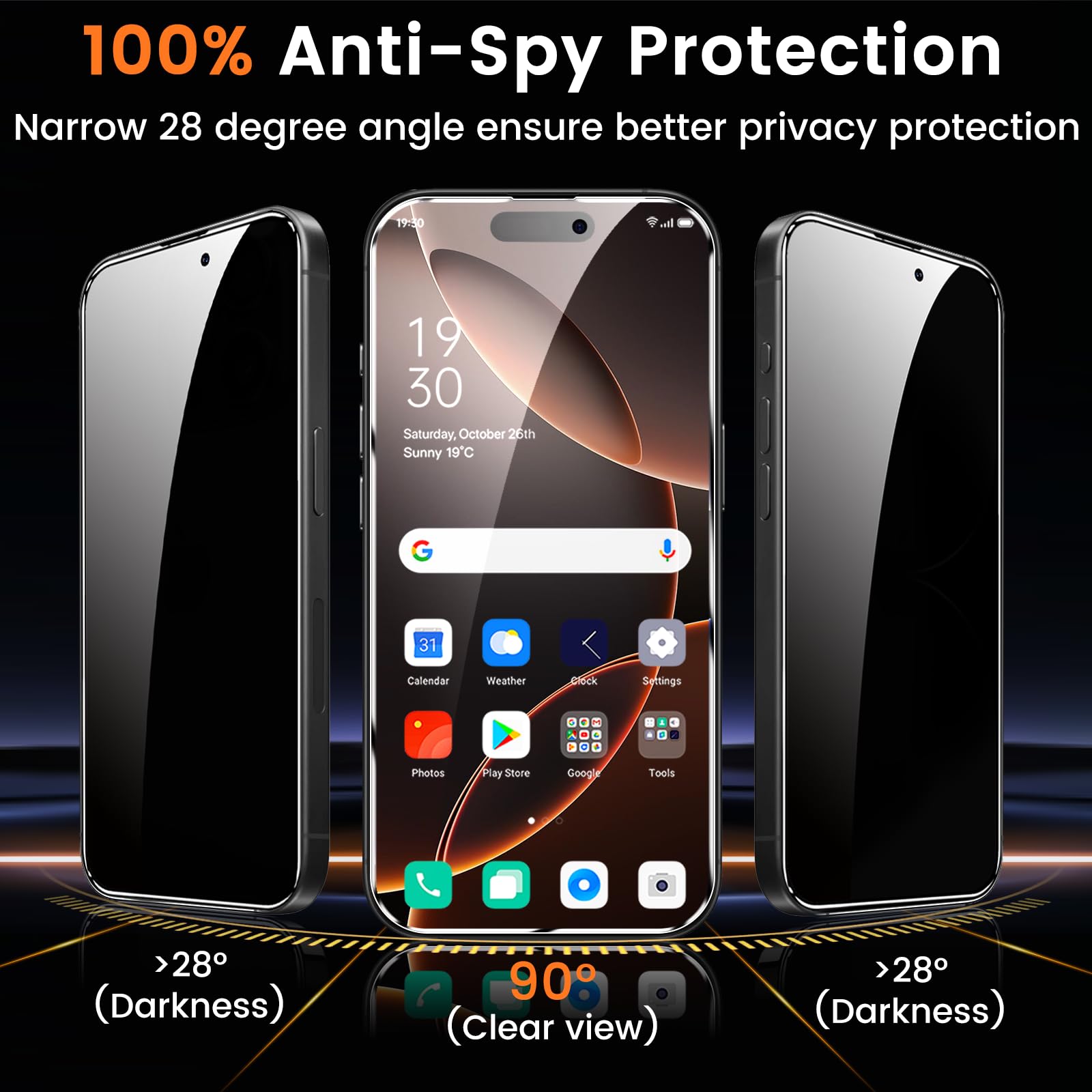 【Scratch Resistant, Anti-Fingerprint】 New precise laser cut tempered glass, with 9H hardness tempered glass, protecting your screen from daily wear and tear like. This privacy glass screen protector is coated with a Hydrophobic and oleophobic clear layer making it anti-fingerprint and smudges.
