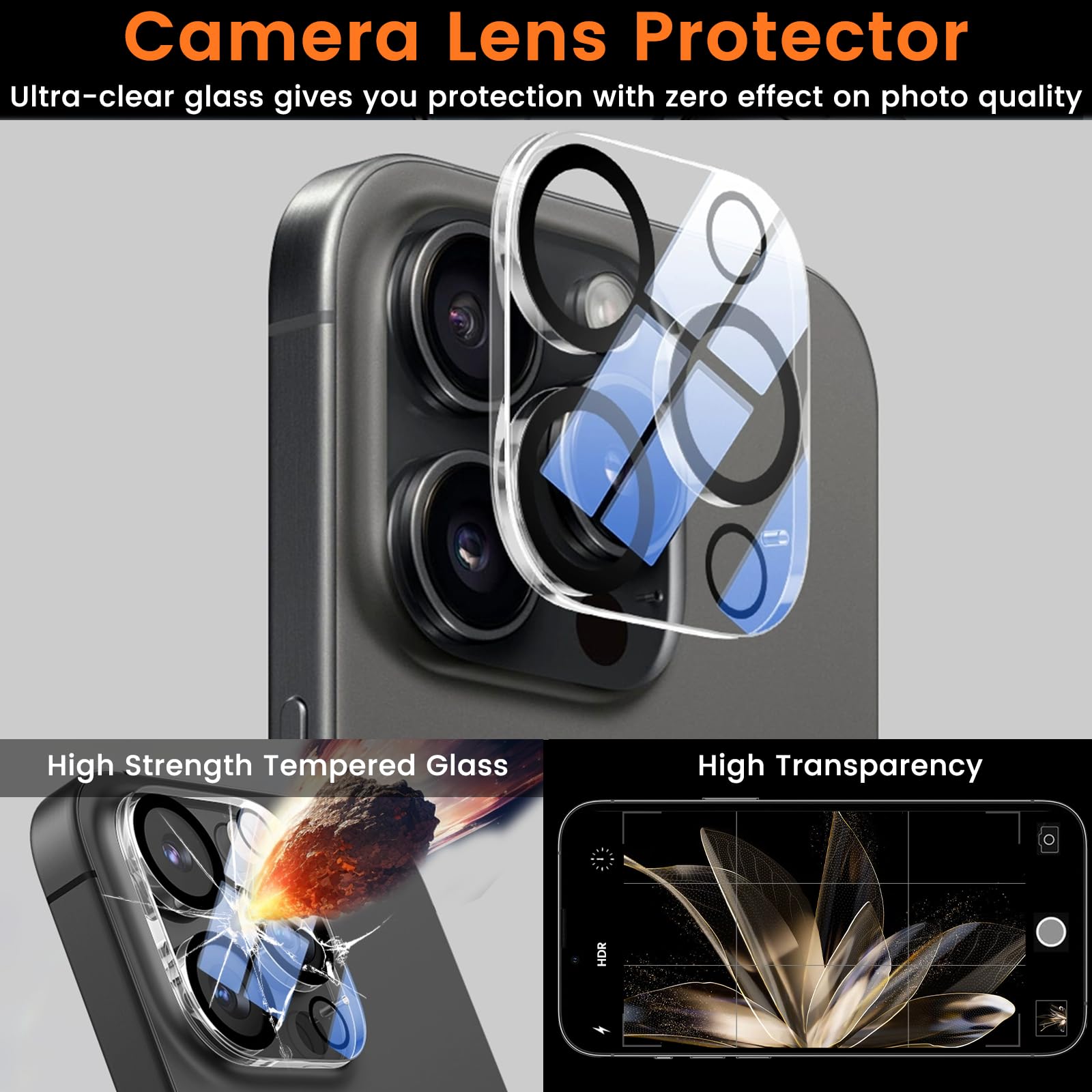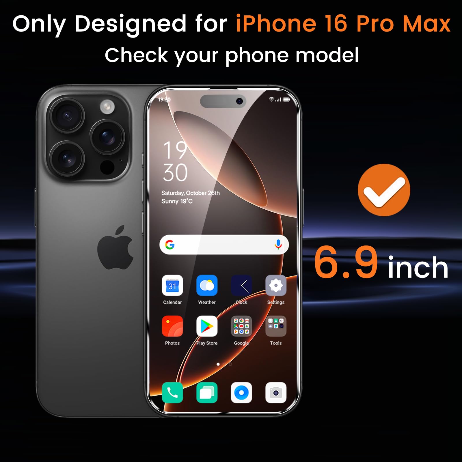 【Designed for iPhone 16 Pro Max 】 This Privacy tempered glass screen protector is specially designed for iPhone 16 Pro Max, include 4 Pack privacy screen protector+4 Pack Tempered Camera Lens protector, perfectly fits your screen and offers great protection to your iPhone.