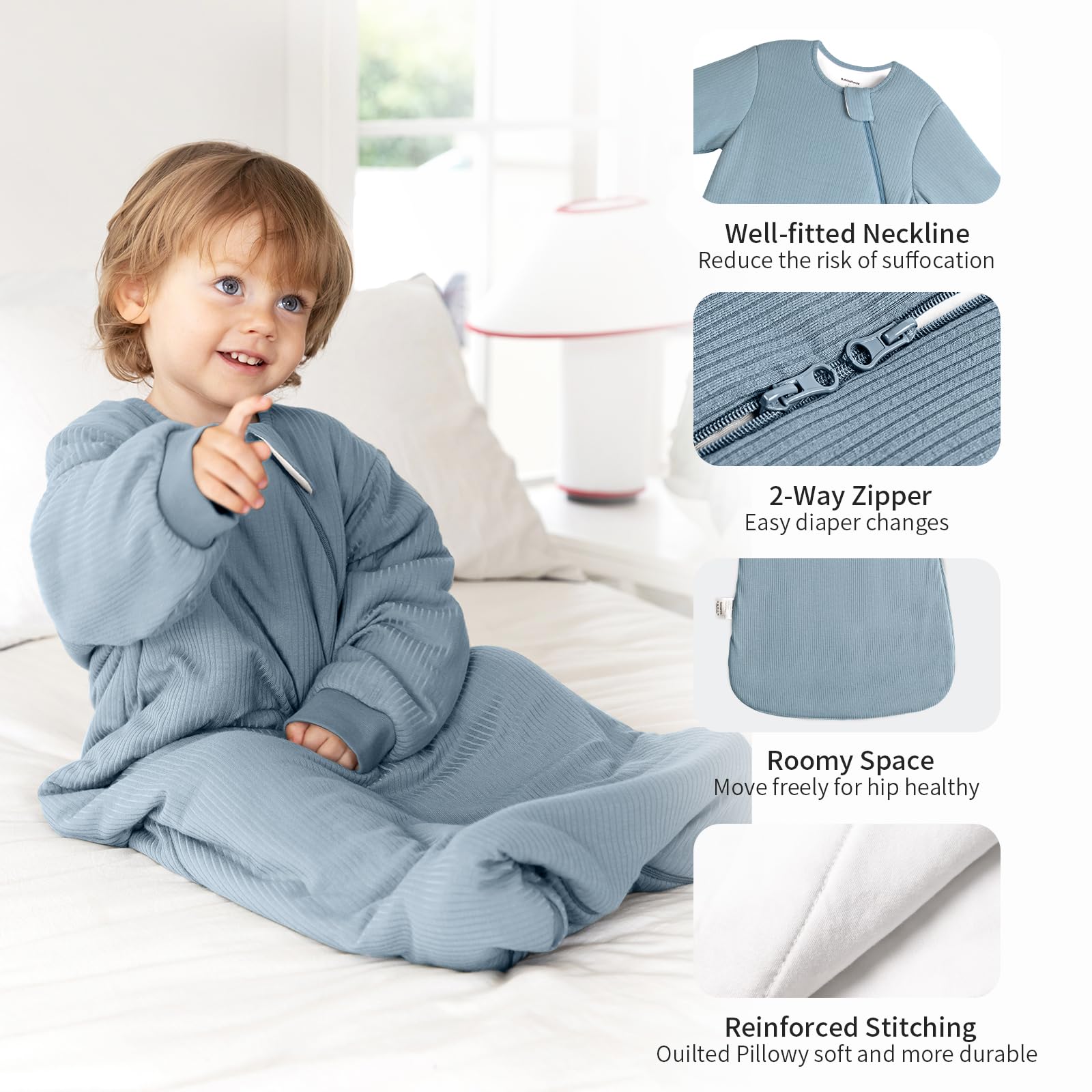 【1.5x Breathable】Our sleep sacks are made of Rayon Made from Bamboo, which is breathable, in addition, the ribbed design makes it more breathable, for heat regulation and moisture wicking, helping to keep your baby comfortable and dry, making it easier for parents and babies alike.