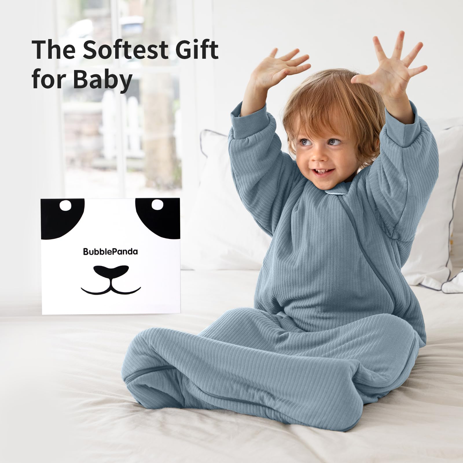 BubblePanda's Baby Sleep Sack is a game-changer for both babies and parents. Crafted with care, it's made from ultra-soft and hypoallergenic rayon Made from Bamboo, ensuring a cozy and breathable environment that regulates body temperature and wicks away sweat. The super-soft fabric is gentle on delicate skin, outperforming cotton and wool in terms of softness, breathability, and moisture absorption. Safety is paramount, with a deep, narrow neckline and zipper protector, while the breathable fabric prevents overheating. Designed for convenience, the 2-way side zipper simplifies midnight diaper changes, and the roomy leg space promotes healthy hip development. Plus, it's machine washable and built to last.