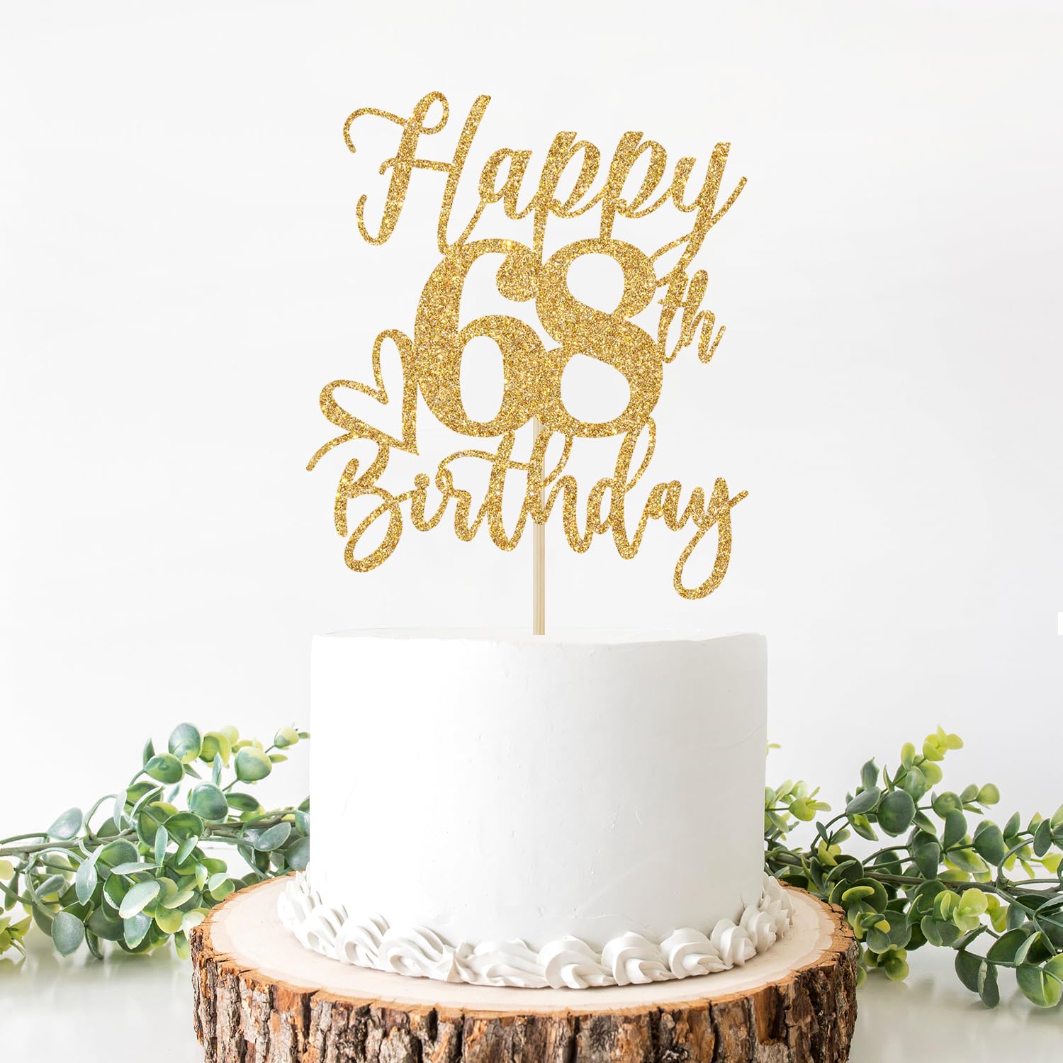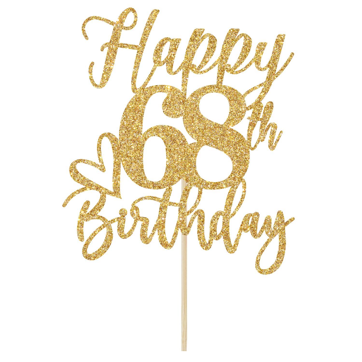 Happy 68th Birthday Cake Topper It made of quality the glitter paper and toothpicks which are safe for use. They are great anniversary themed party cake toppers, to make the cake looks much more different. The cute cake toppers also can be used as cupcake picks, appetizer picks, fruit picks, or party food picks, etc. This classy luxurious cake topper is a great choice to decorate for your party idea. It is perfect for party celebrations! Used as a photography prop, it will be sign to take photo in your party.