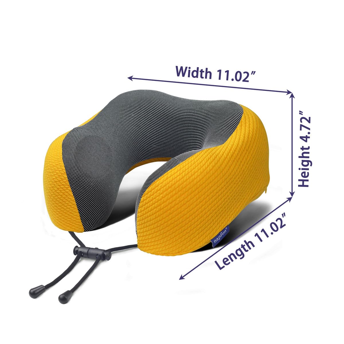 napfun Neck Pillow for Traveling, Upgraded Travel Neck Pillow for Airplane 100% Pure Memory Foam Travel Pillow for Flight Headrest Sleep, Portable Plane Accessories, Yellow, Medium (120-200LB)