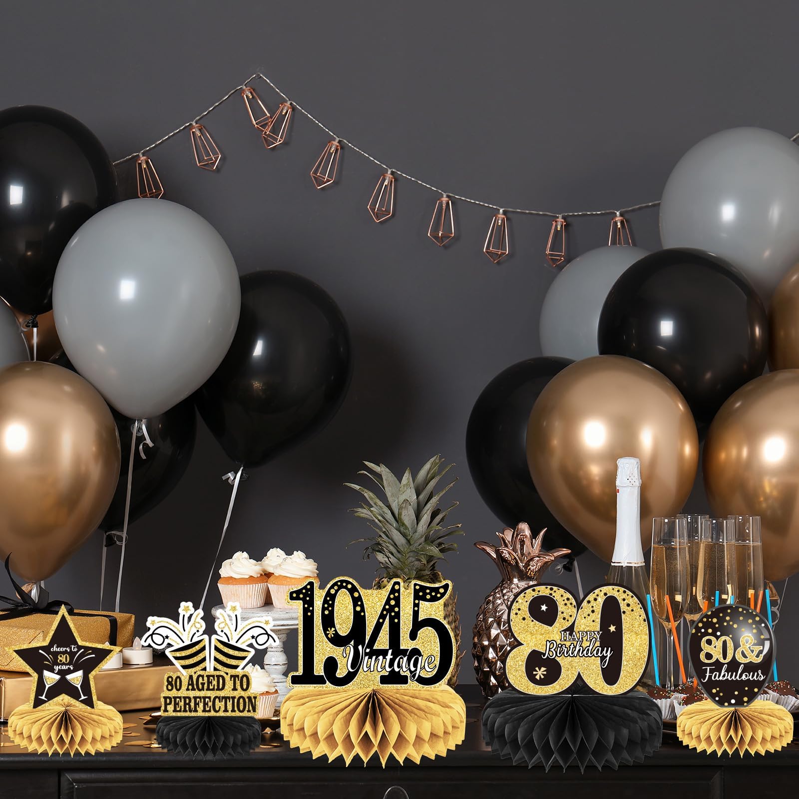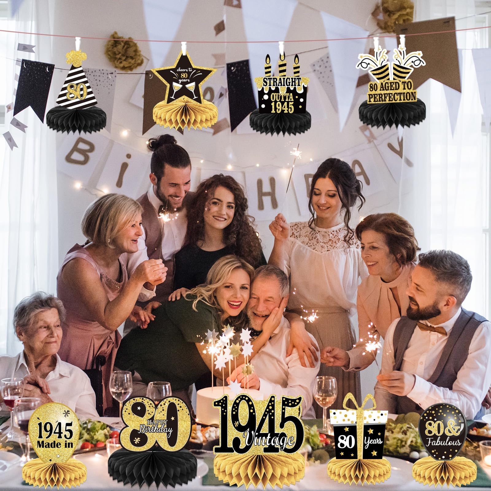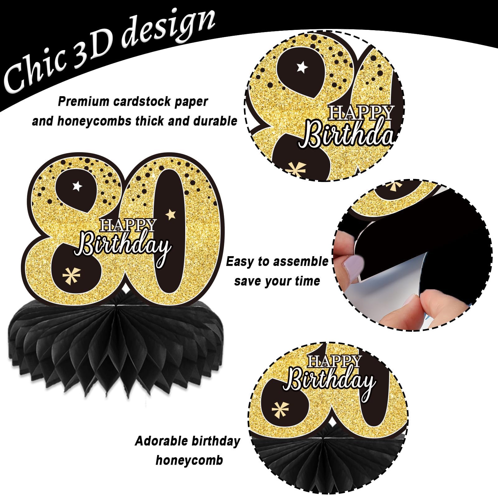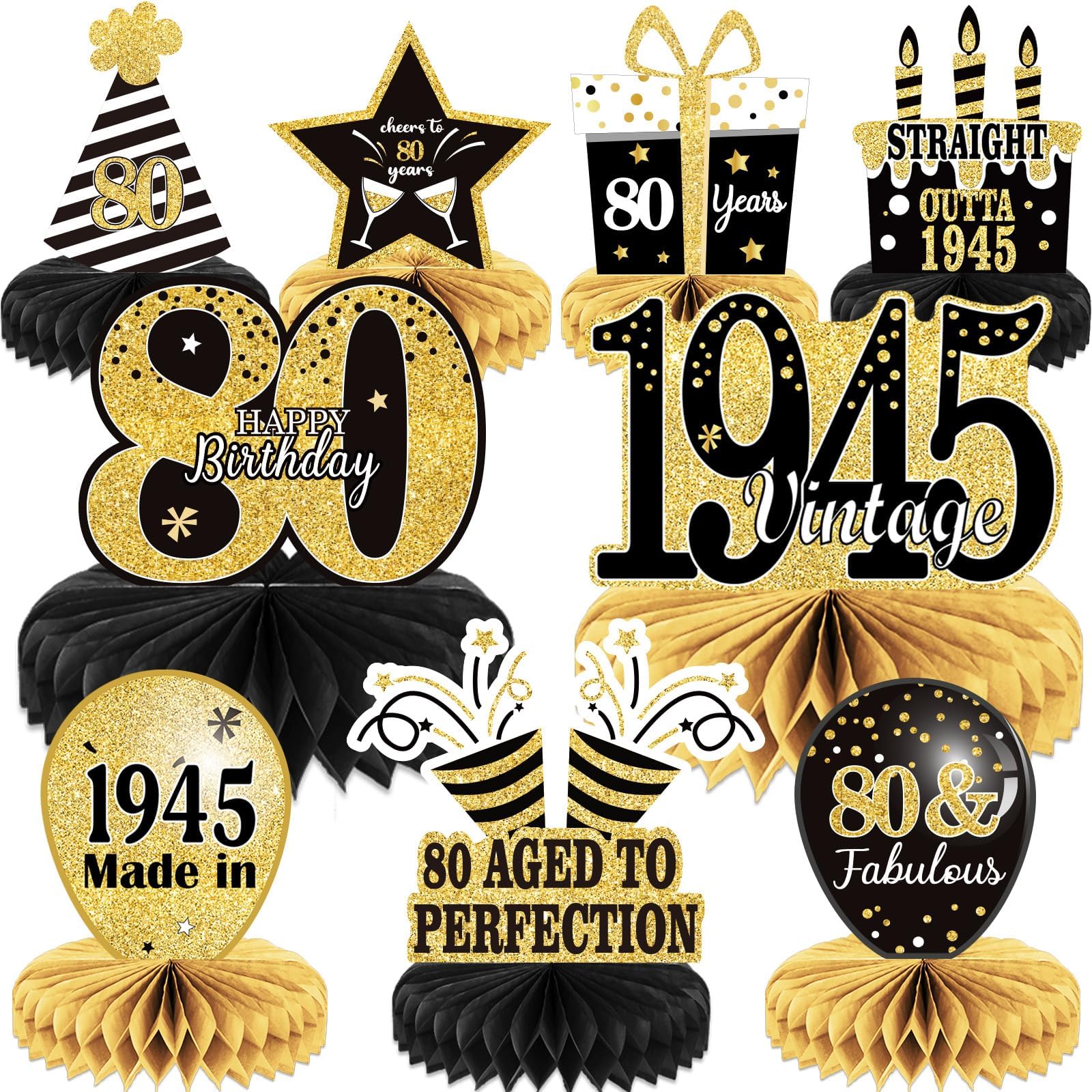 Great 80th birthday party supplies: these cheers to 80 years table centerpieces exquisitely designed with interesting birthday elements so that everyone will love these chic designs. Decorating your home and party with our honeycomb centerpieces will be a big hit at your party.