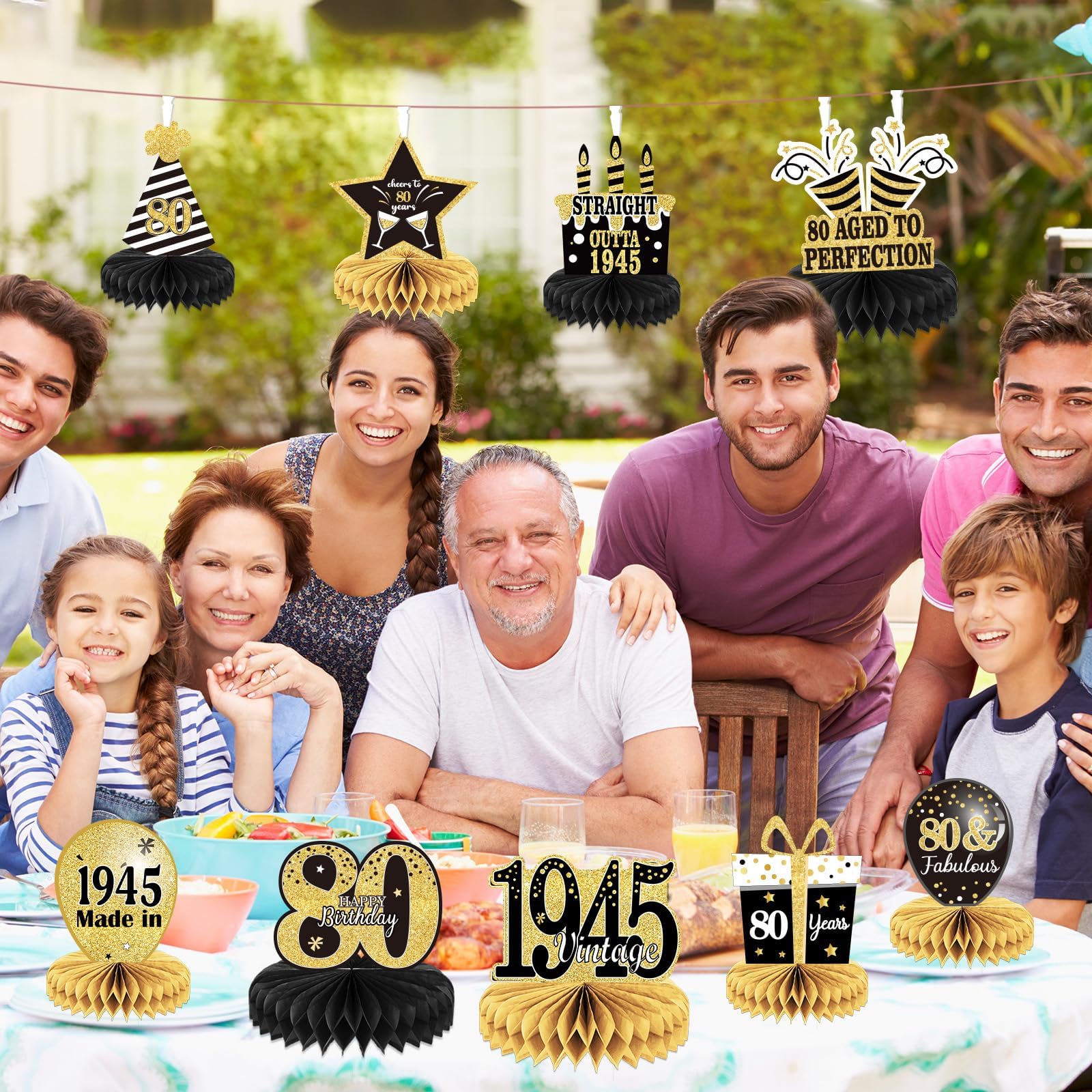 Package: you will get 9 pieces of Vintage 1945 honeycomb centerpieces including stars,cake,balloons , and so on;These 80th table decorations are so chic and funny that make your birthday theme party a big hit.