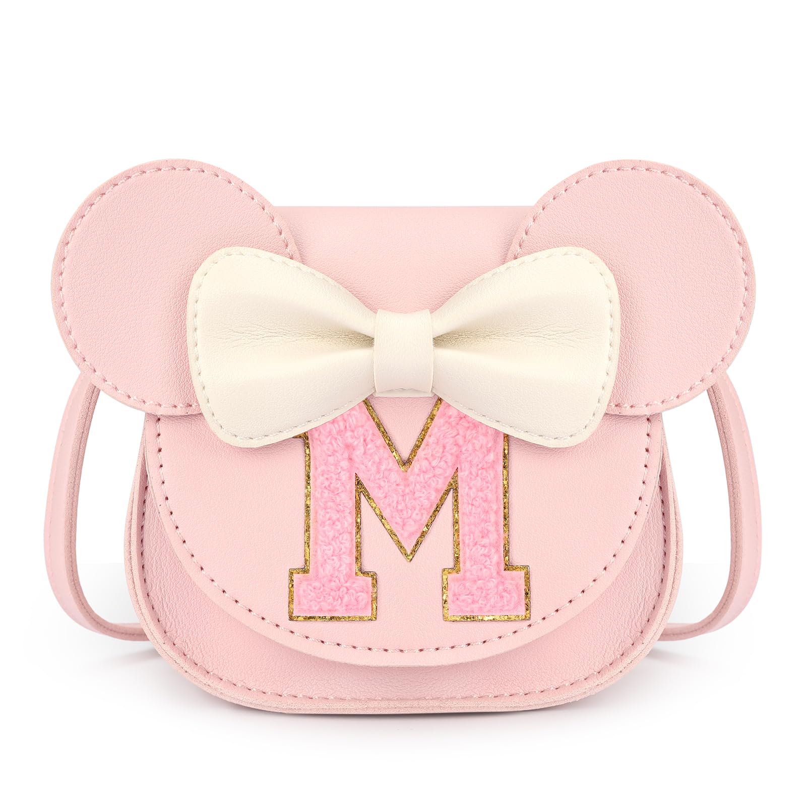 Cute Shape: Patched with a letter,This little girl purse would be a personalized birthday gifts for 6 year old girls or under. Kids would love its mini mouse ears and bow
