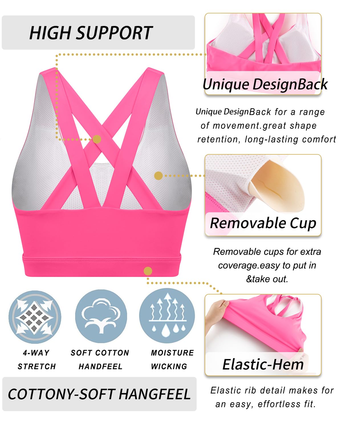 WHAT CAN WE OFFER YOU : Moisture-wicking Technology Metial Which Mean that You Can Enjoy Keeping Your Body Cool & Dry. Super Soft Elastic Band for Comfort & Movement Which Will Allow You Can Enjoy Sinking into Your Practice without Sacrificing Comfort. Built for Mid-Impact Support so You Will Get Staying Fit & Focused .We Wear-tested by Our In-house Team for the Perfect Fit , Goodbye Old Bra !!