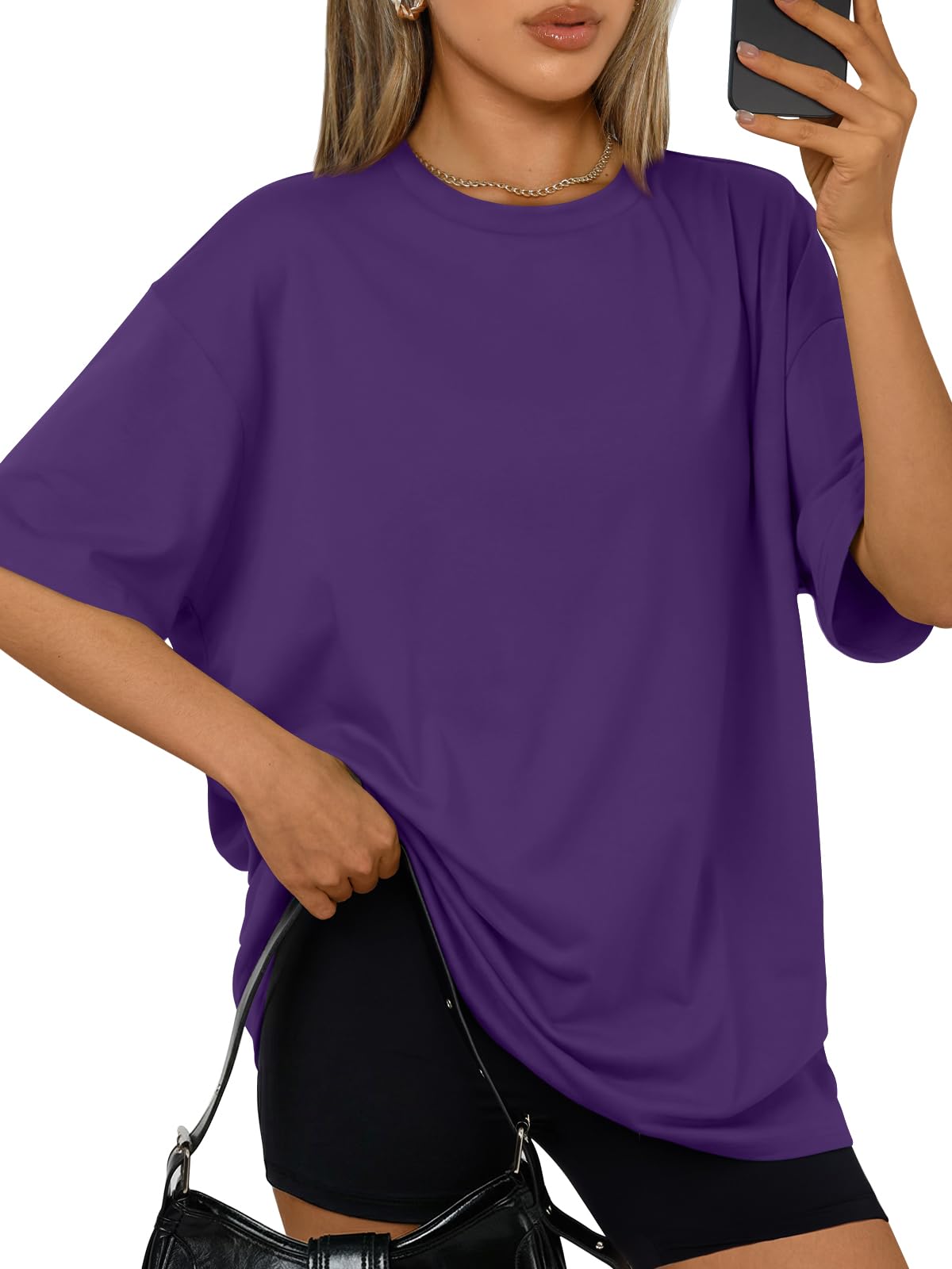 Design:Short sleeve shirts,round neck,loose fit tops,oversized casual blouse,solid color never out of style,easy to match with every style.