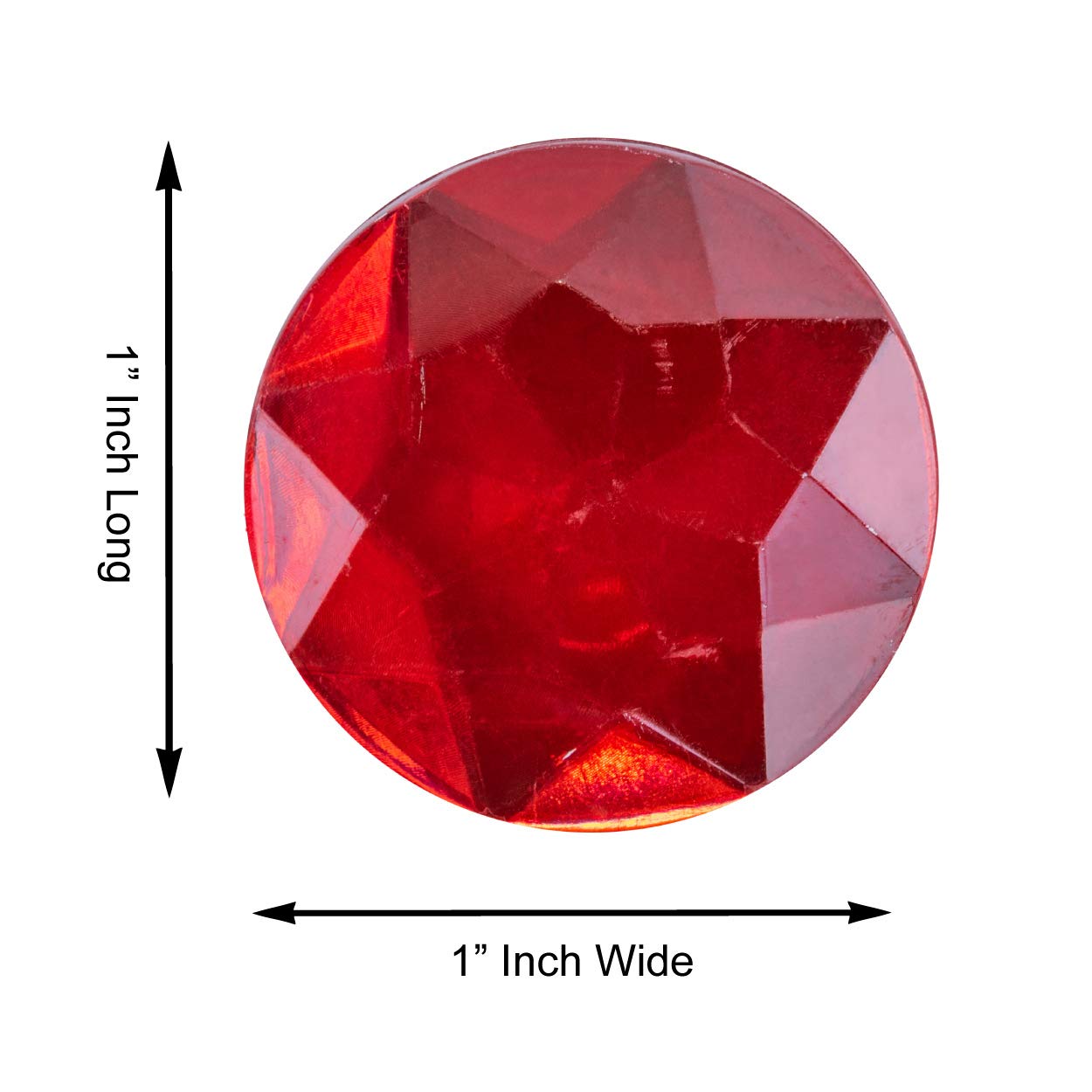 Arrives in a great assortment of colors including green, clear, red, pink, blue, purple, gold, and more! Package of 100 assorted gems. Each piece measures at 1" inch in diameter.