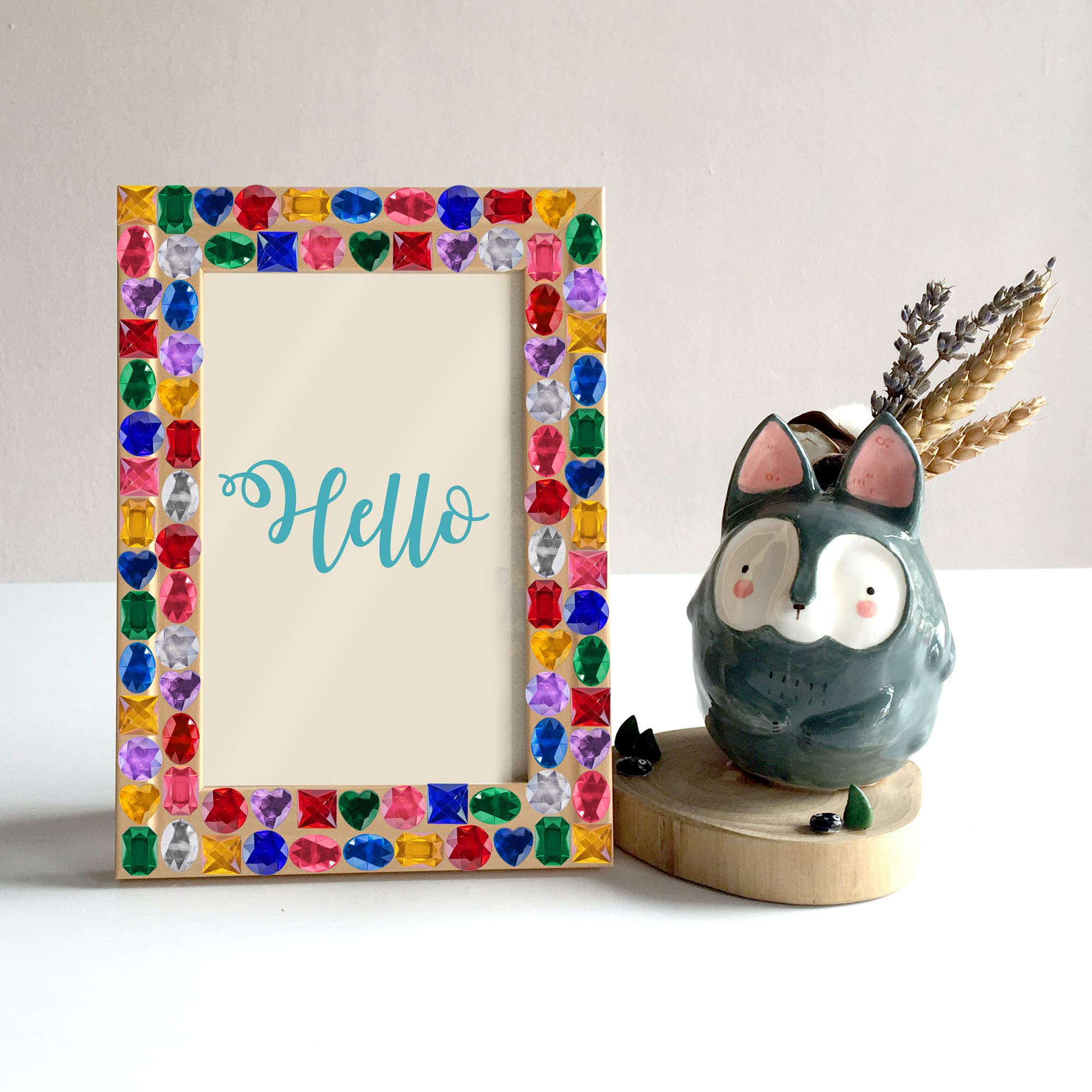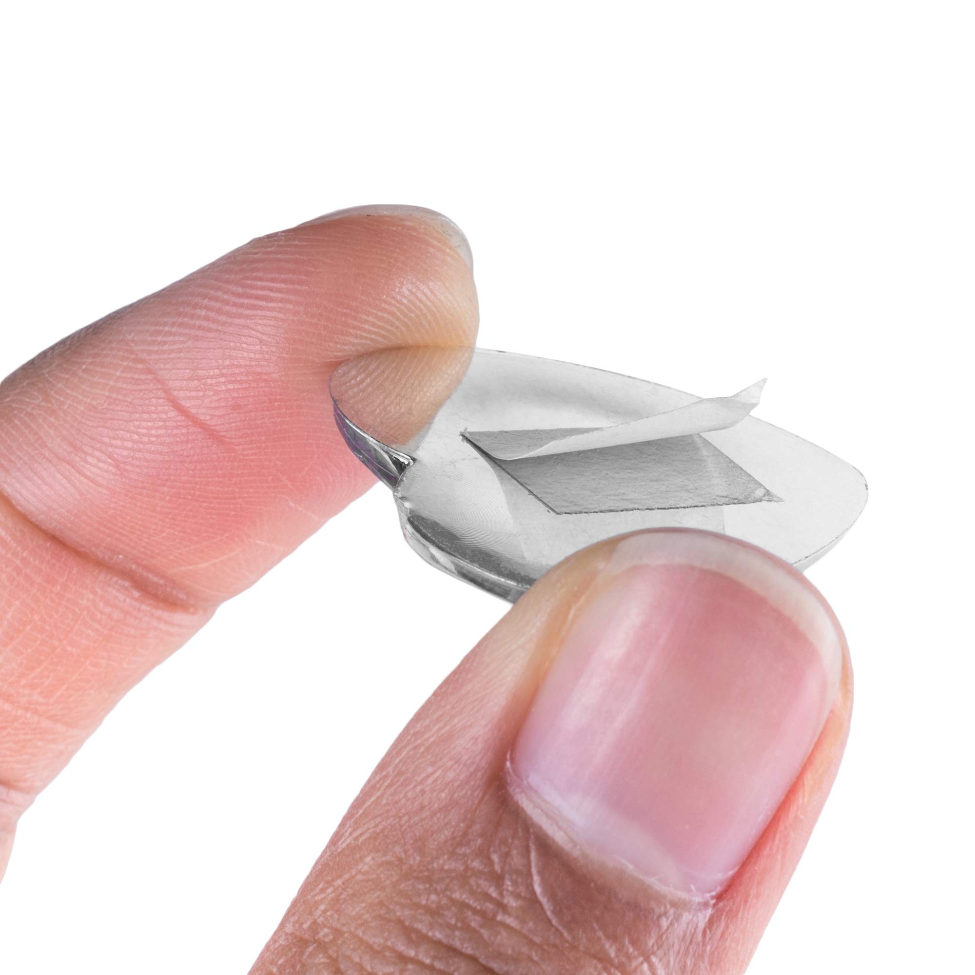 Gems come in an assortment of shapes such as hearts, circles, and ovals. Each gem comes with a strip on the back that peels off to easily stick onto practically any surface.