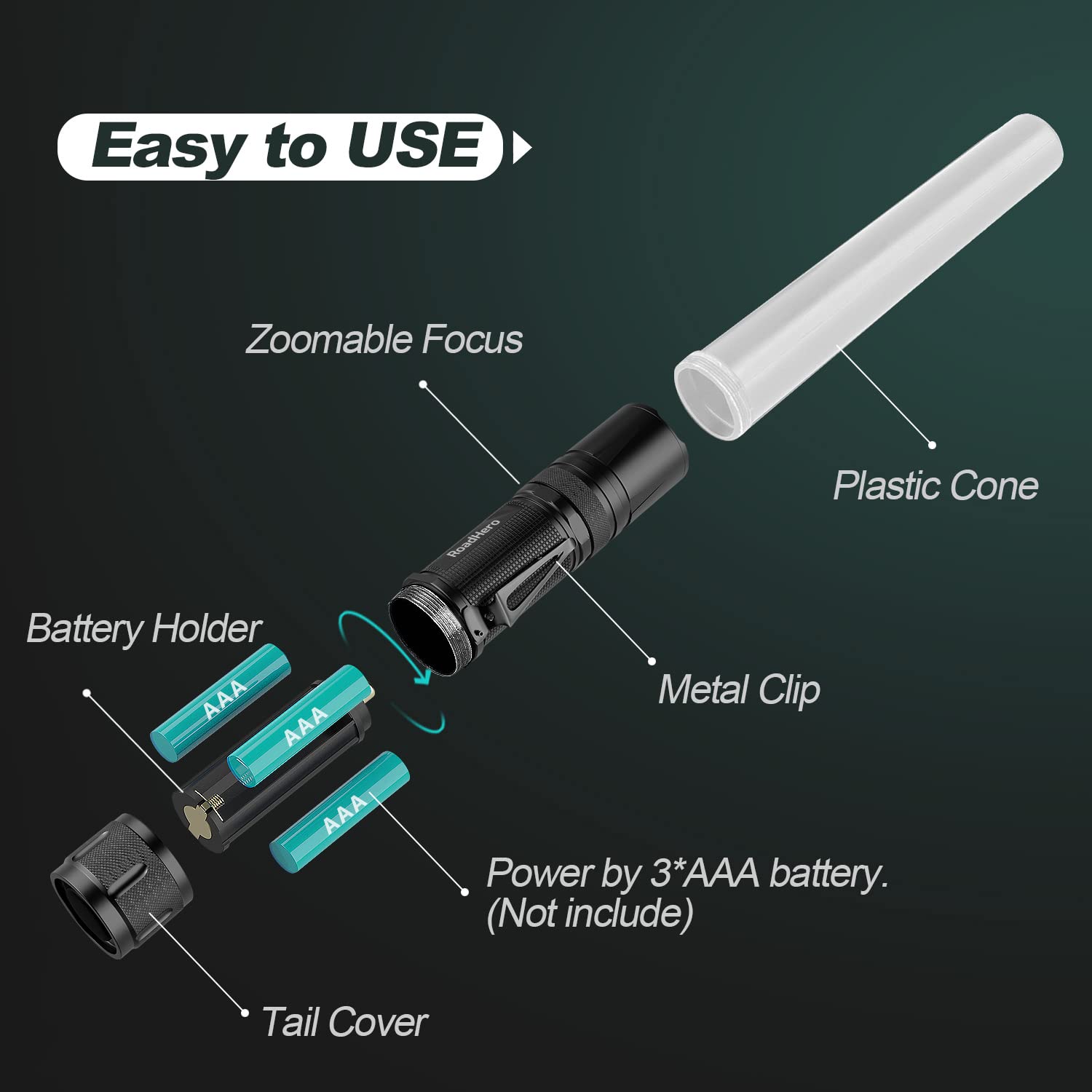 5 Flashing Modes: You can change the color: White, Blue, Green, Red, Red Flashing. Zoomable to focus in on faraway objects or zoom out to light up a wide area. Easy to choose the suitable modes according to the specific situation