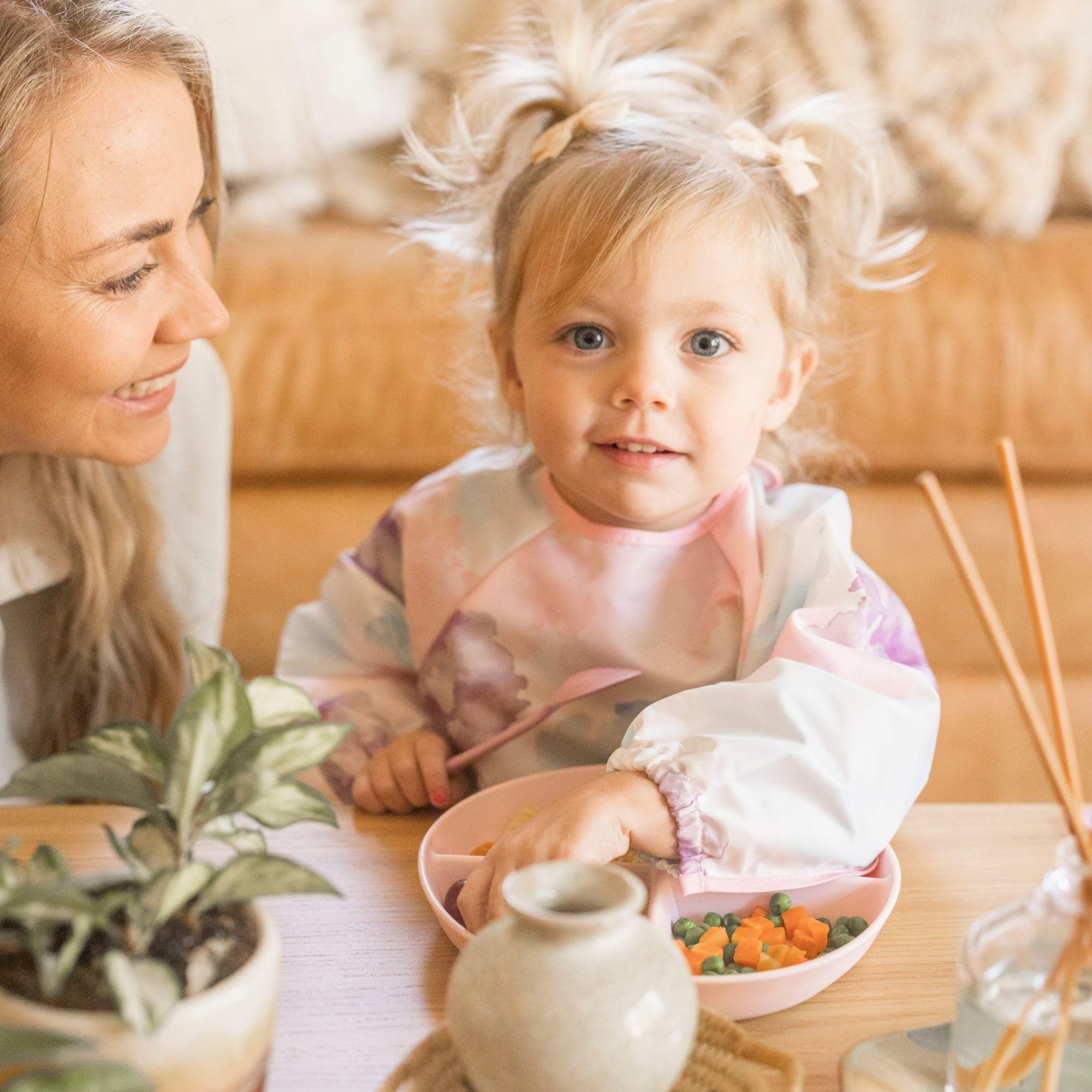 FLEXIBLE COMFORT: Our lightweight bib with sleeves moves with your child, ensuring a soft, non-restrictive fit for every activity. Perfect as a baby food bib for mealtime, playtime, and on-the-go adventures.
