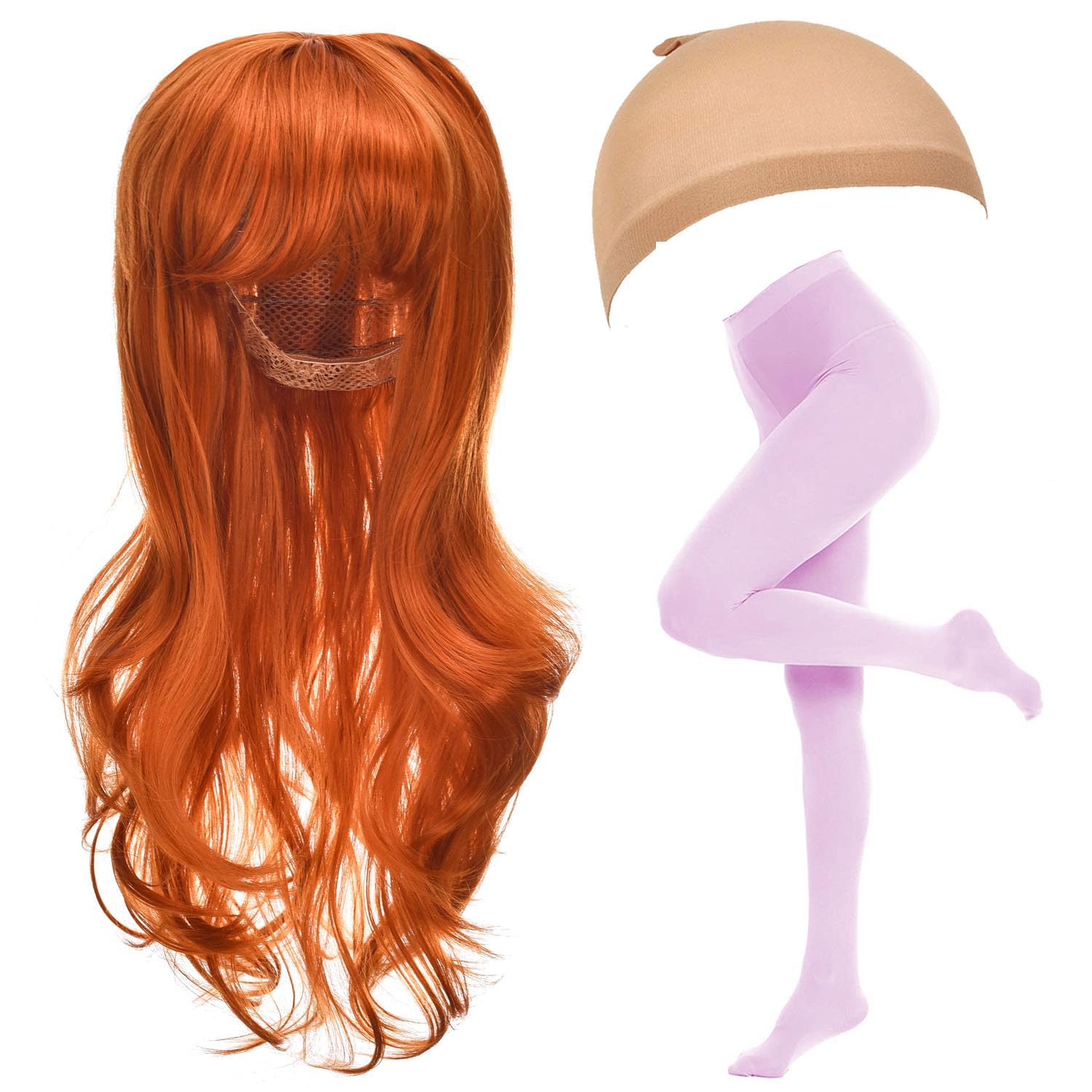 Brown wig, purple hairband,green neck scarf and knee socks are a great costume accessories addition for a halloween sexy theme party