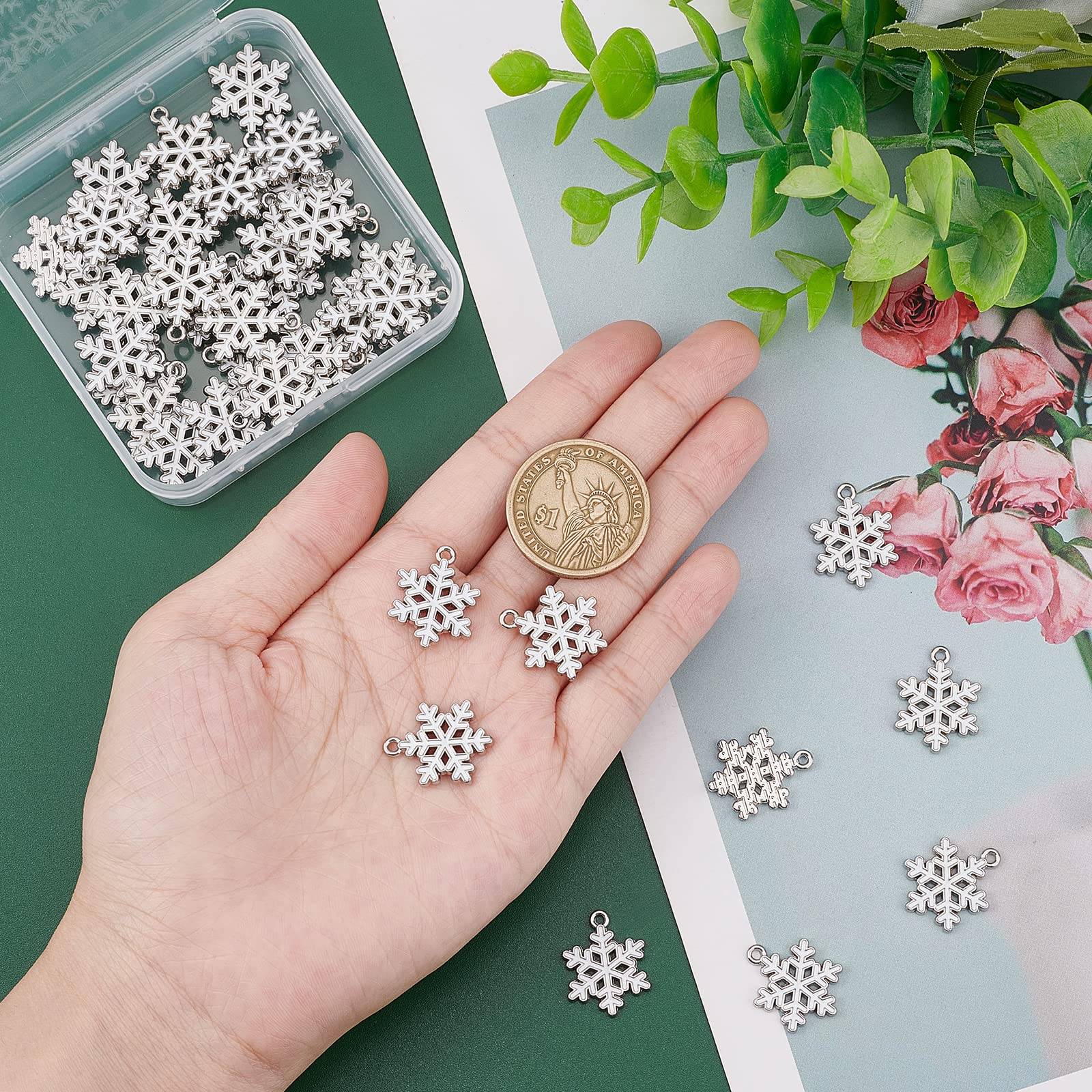 ❤[ADORABLE DESIGN]: These pretty snowflake enamel pendants feature with bright creamy sliver color. With detail carve ornament make it gorgeous and classy that they would highlight your fashionable jewelry or handcraft projects.