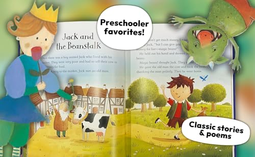 Snuggle up to your favorite nursery rhymes and drift into the magical worlds of all your most beloved fairytale characters with this unique collection of enchanting stories carefully selected to enthrall 4-year-olds. Enjoy the classic tales of The Ugly Duckling, Jack and the Beanstalk, and The Princess and the Pea along with exciting new stories and rhymes in this sturdy collectible format filled with playful illustrations your preschooler will adore. A perfect book to celebrate your favorite 4-year-old! Short, easy-to-read stories are ideal for capturing the attention of toddlers. Playful illustrations fill every page perfect for keeping toddlers entertained and engaged Includes favorite classic stories, fairy tales, and nursery rhymes such as Little Red Hen, Hansel and Gretel, and Old Mother Hubbard designed to delight your little one during storytime and become a bedtime favorite A wonderful gift for any occasion: birthdays, holidays, and more! Collect the series for every milestone! Ages 2-5 available!
