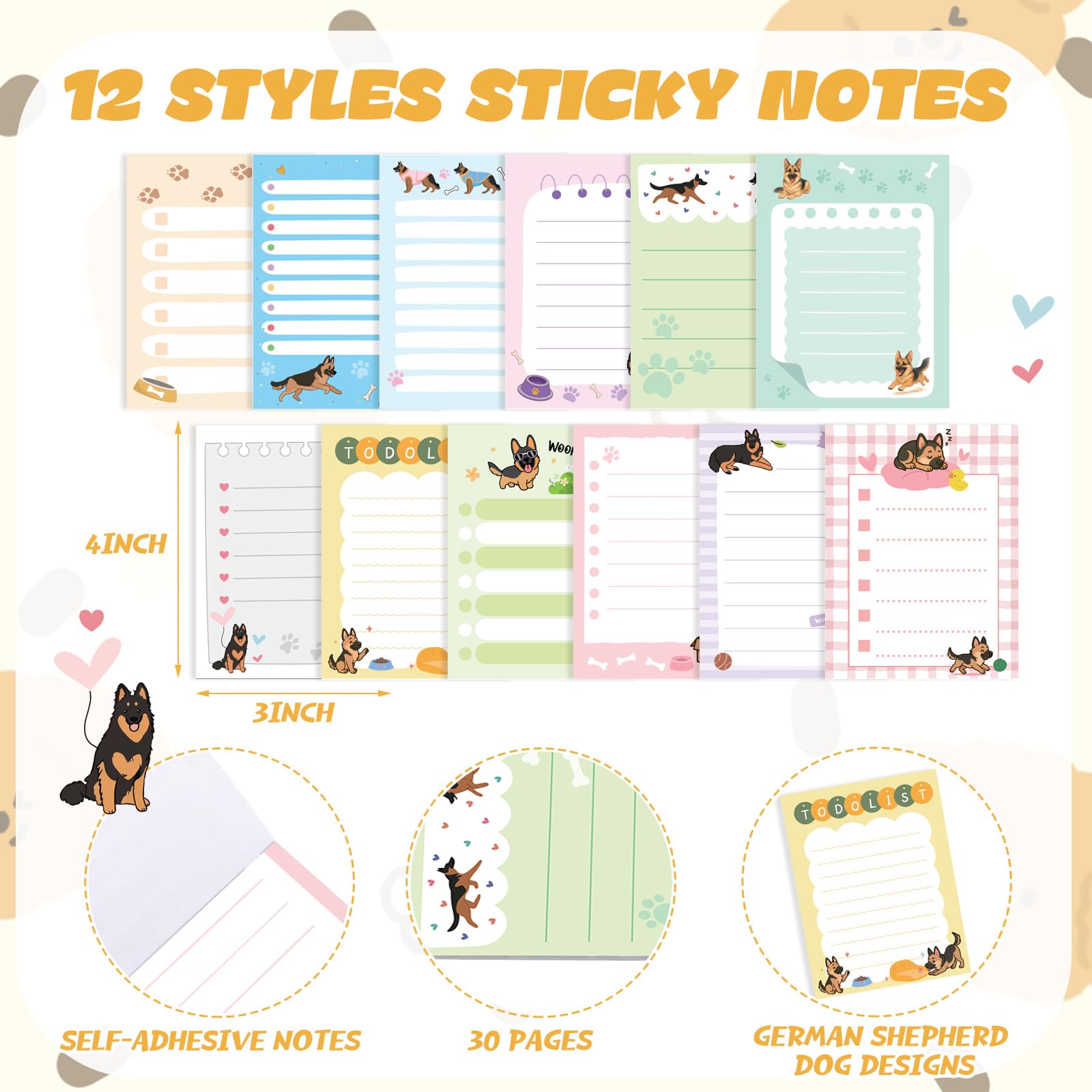 Sufficient Quantity: you will receive 12 pcs of German Shepherd themed sticky notes, packaged with 30 pages each, for a total of 360 sheets; The dimensions are a handy 3x4 inches /7.6x10 cm, enough quantity and rich design to meet your various needs and replacements