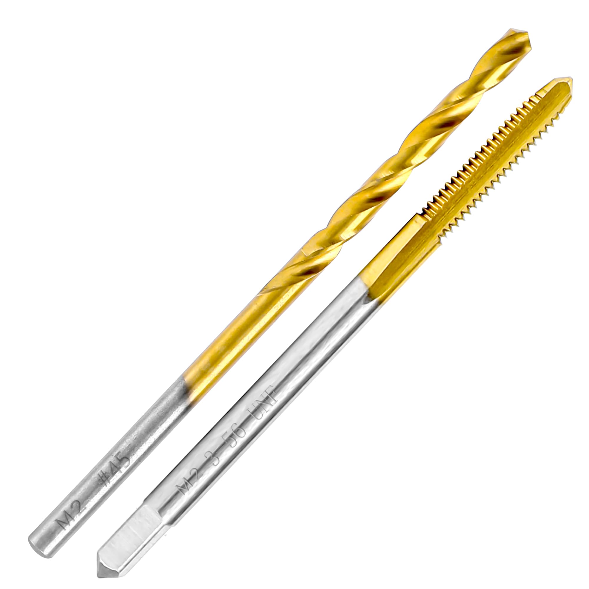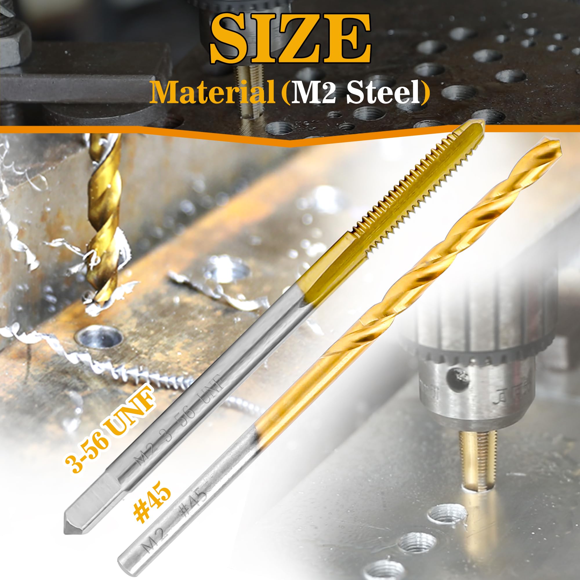 【Size】Include 3-56UNF M2 steel tap and #45 M2 HSS drill bit with round shank,all stored in a storage box for easy carrying.