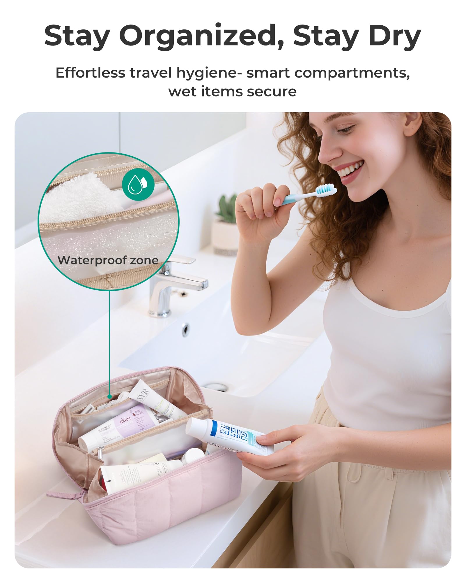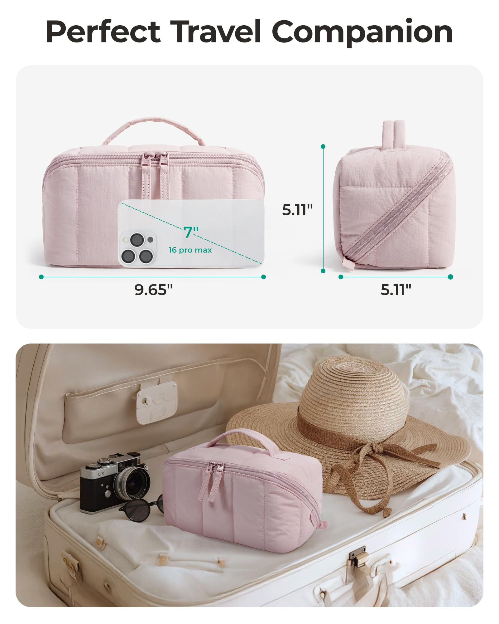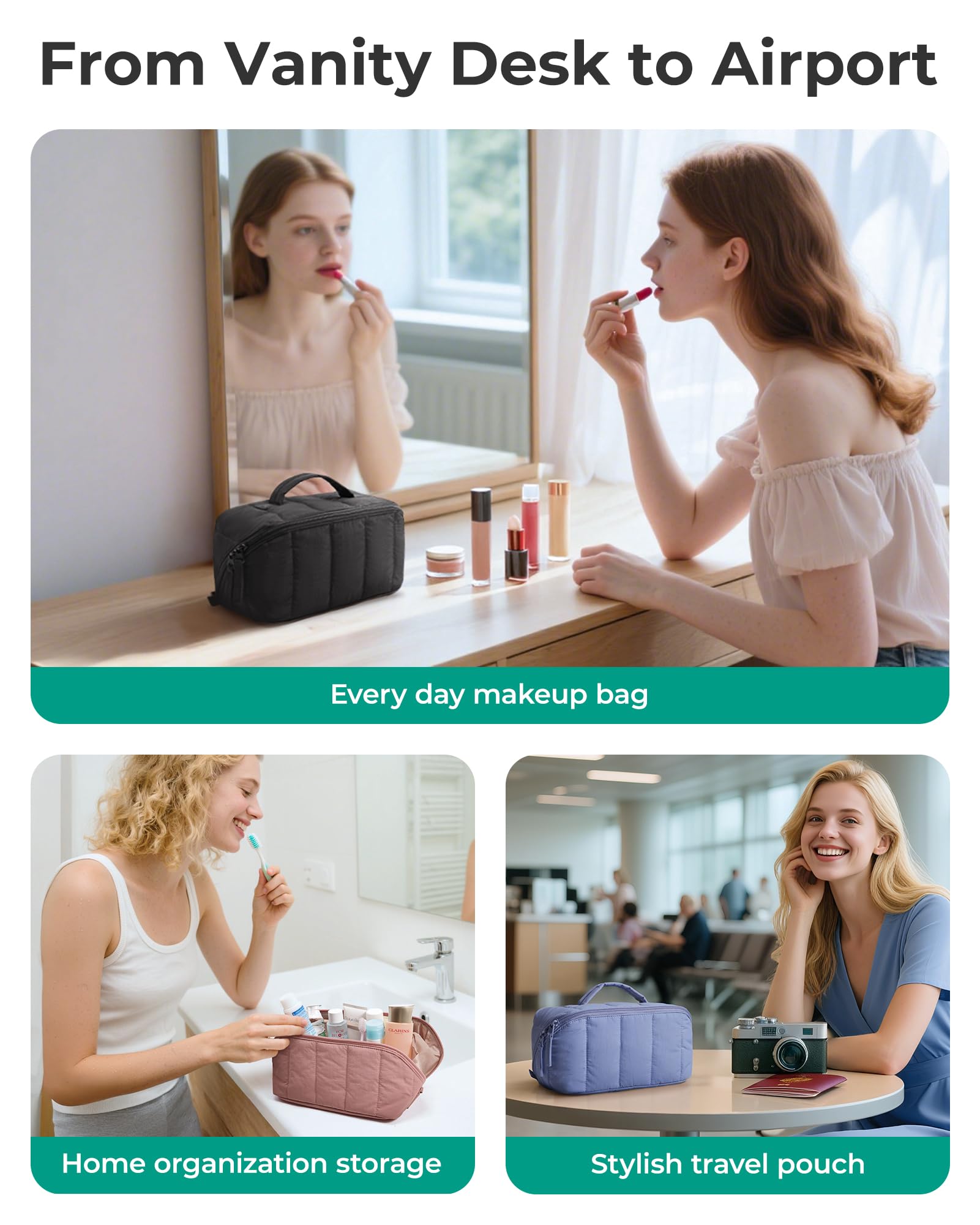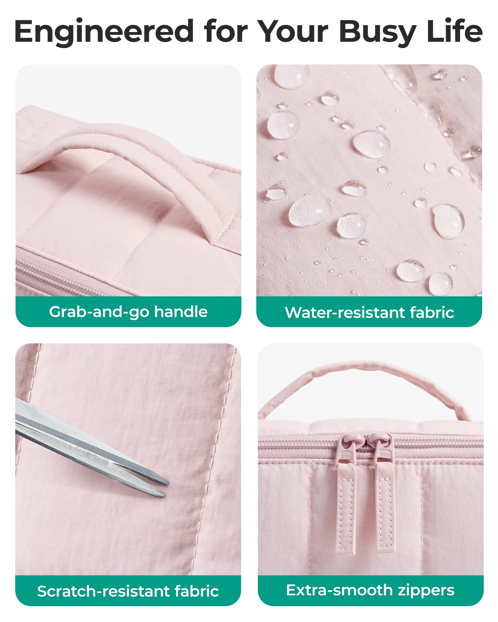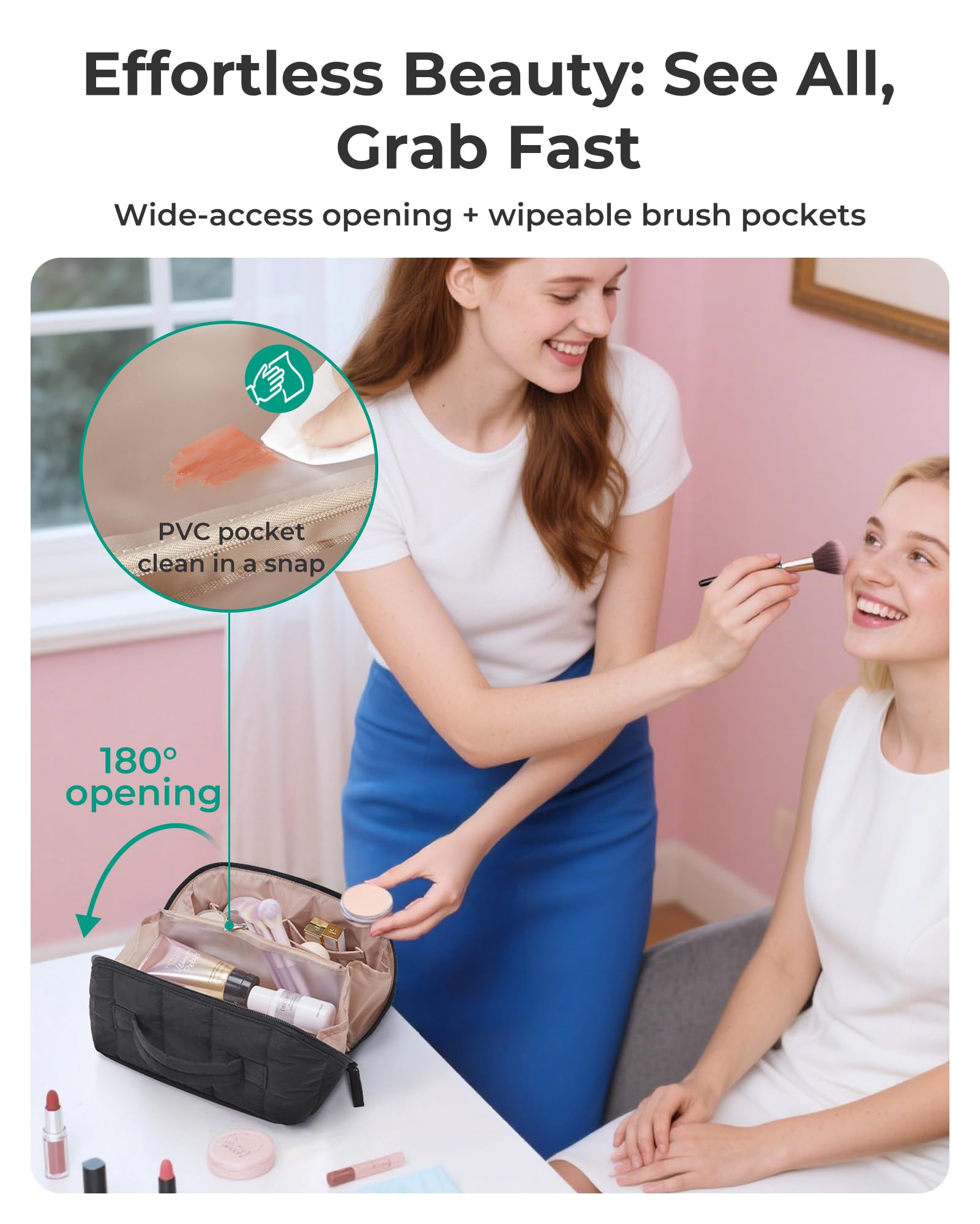 Full-Open Design for Easy Access: Experience ultimate convenience with our makeup bag's full-open design. This feature allows you to effortlessly view and reach your cosmetics and toiletries. No more digging through a cluttered bag—simply unzip and find what you need in seconds, making your daily beauty routine smoother and more efficient.