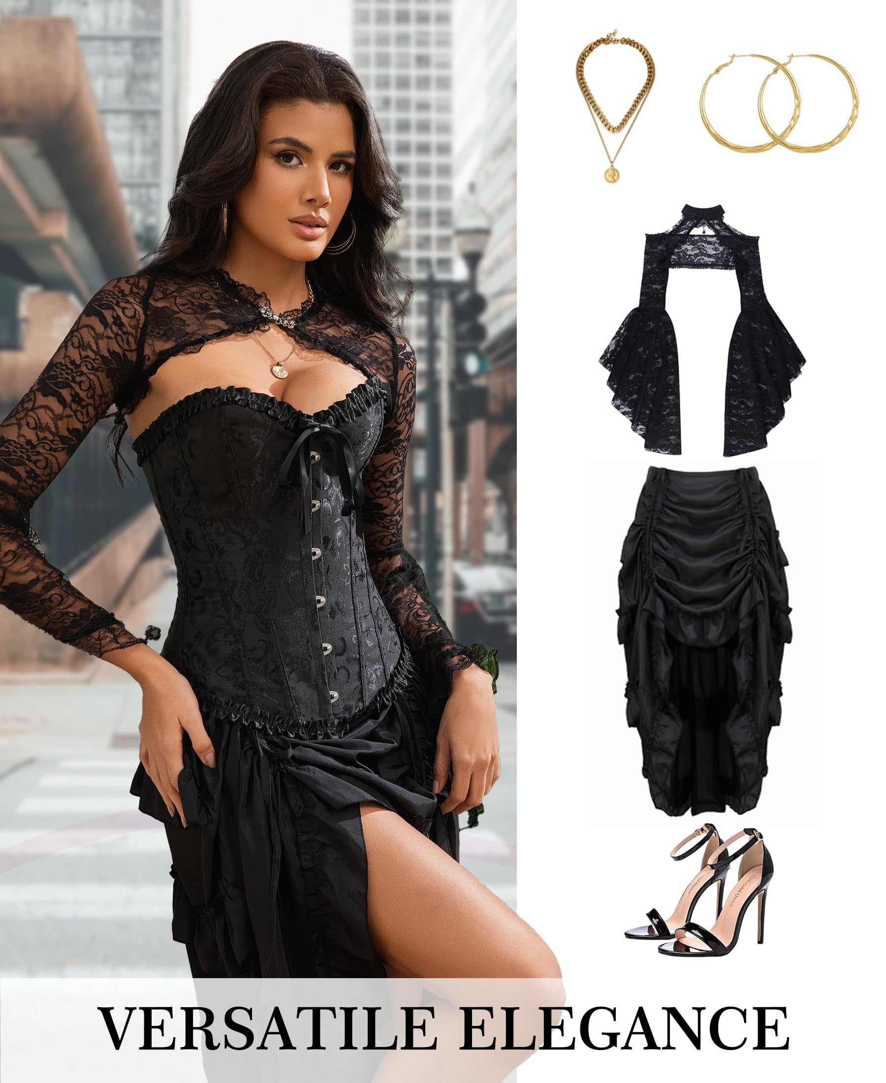VERSATILE ELEGANCE: Corset with straps timeless design is suitable for any setting, be it enhancing the beauty of a formal dress or adding an avant-garde twist to everyday jeans. As an undergarment or a statement piece, this black lingerie top corset expresses a style that knows no bounds. The womens corset top is perfect for creating standout looks for a night on the town or for layering as sultry nightwear. Our corsets for women don't just complement an outfit - they transform it!