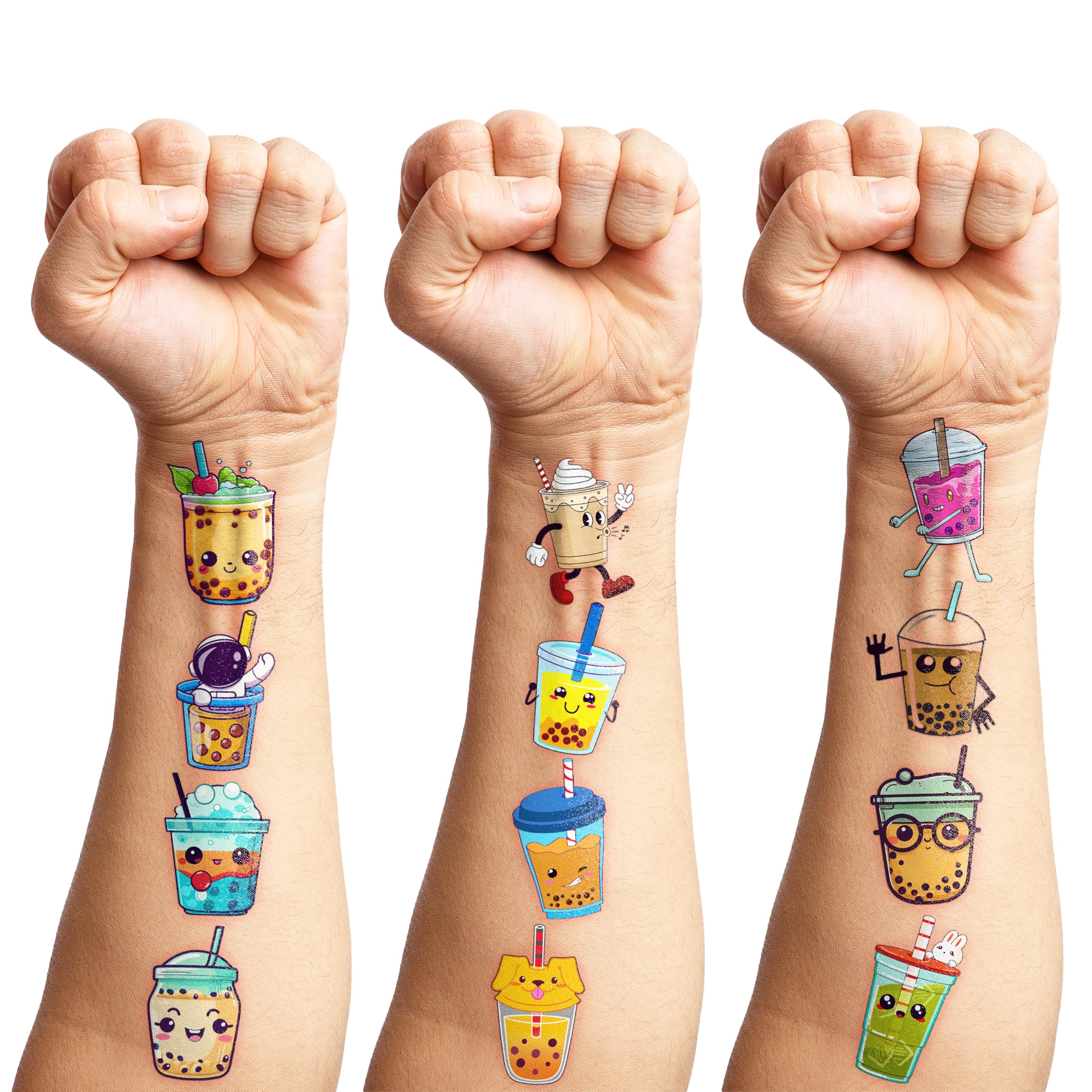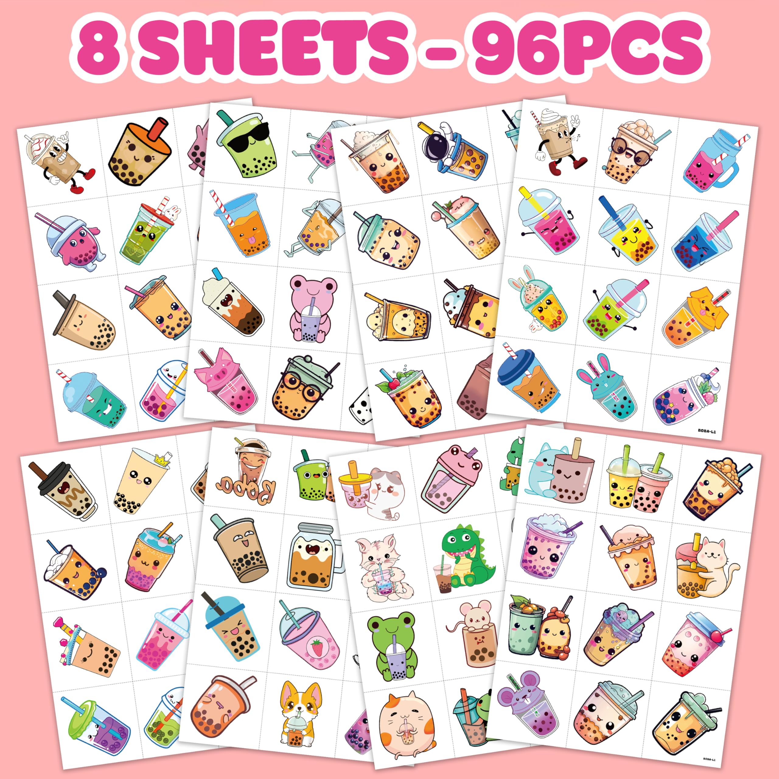 🥤 TATTOOS FOR BOBA TEA THEMED DECORATION: BOBA TEA PRE-CUT TATTOOS for people who love Bubble Boba Milk Tea Featuring 8 sheets with 96 PCS of lovely, fun and colorful design. Each sheet measures 6.3 * 4.7 inches. You can temporarily tattoo them on your body or objects such as phones, bottles, laptop…