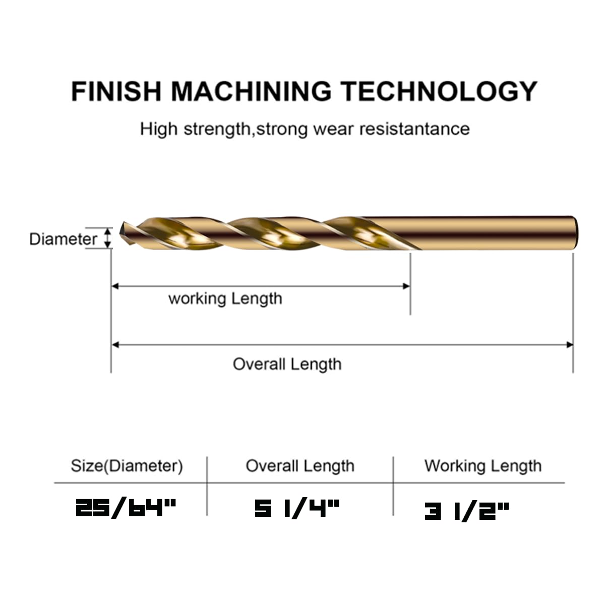 3 PACK OF 25/64" COBALT DRILL BITS - 25/64" Diameter with a Flute Length of 3-3/8" and Total length of 5-1/4"