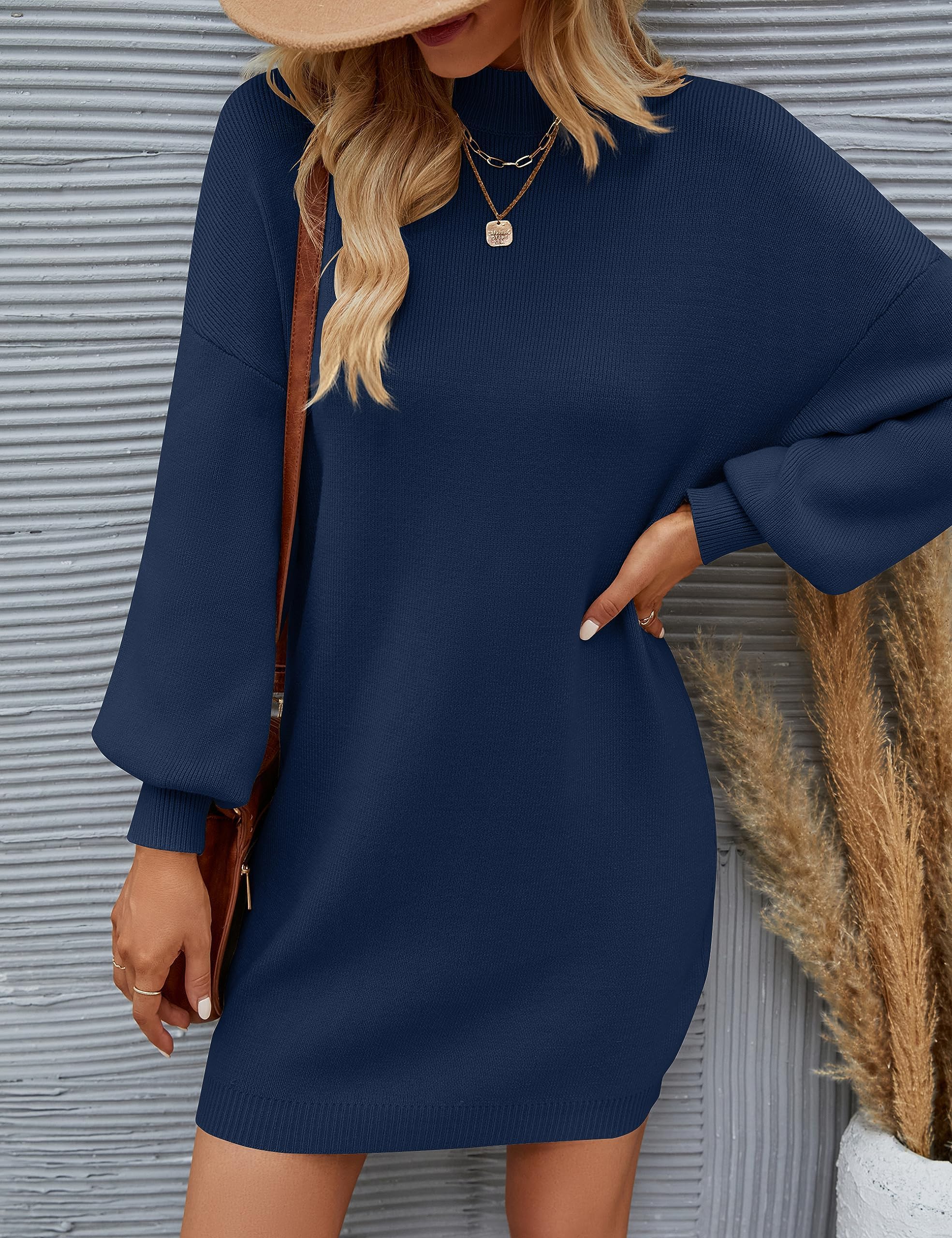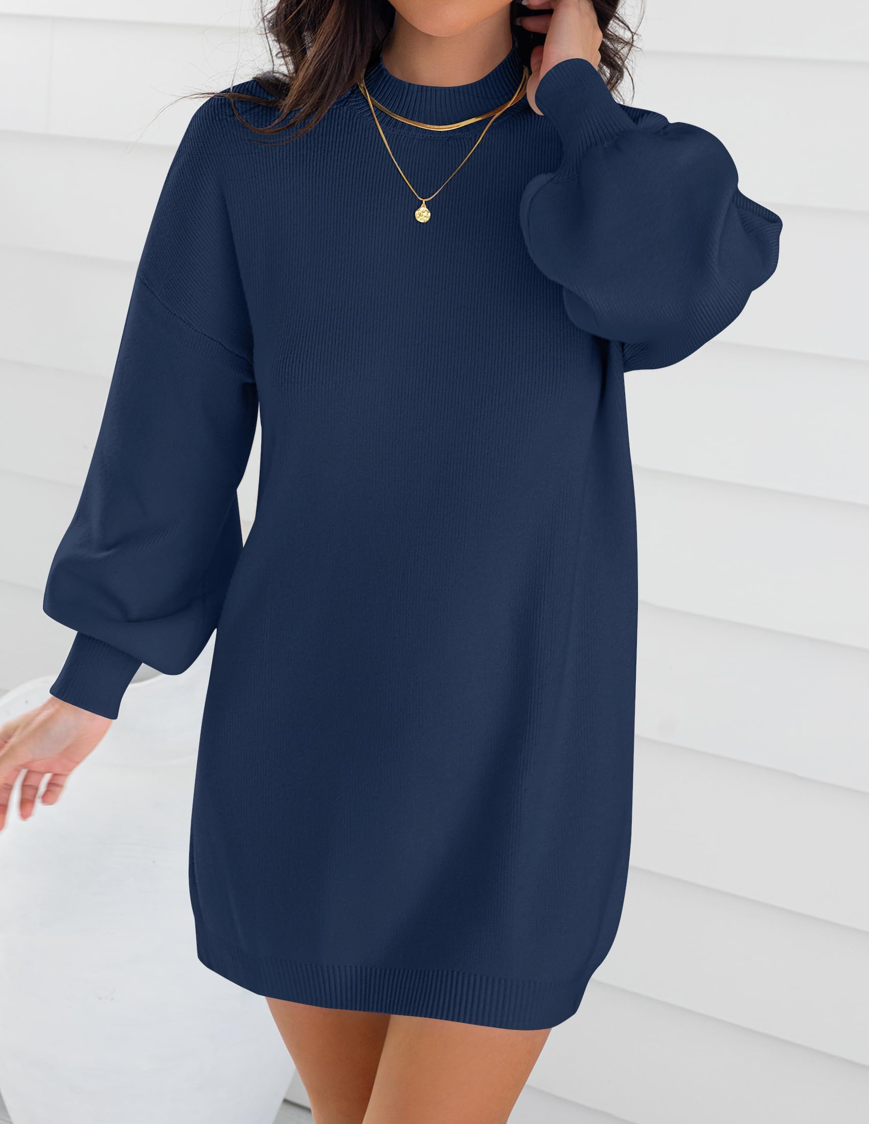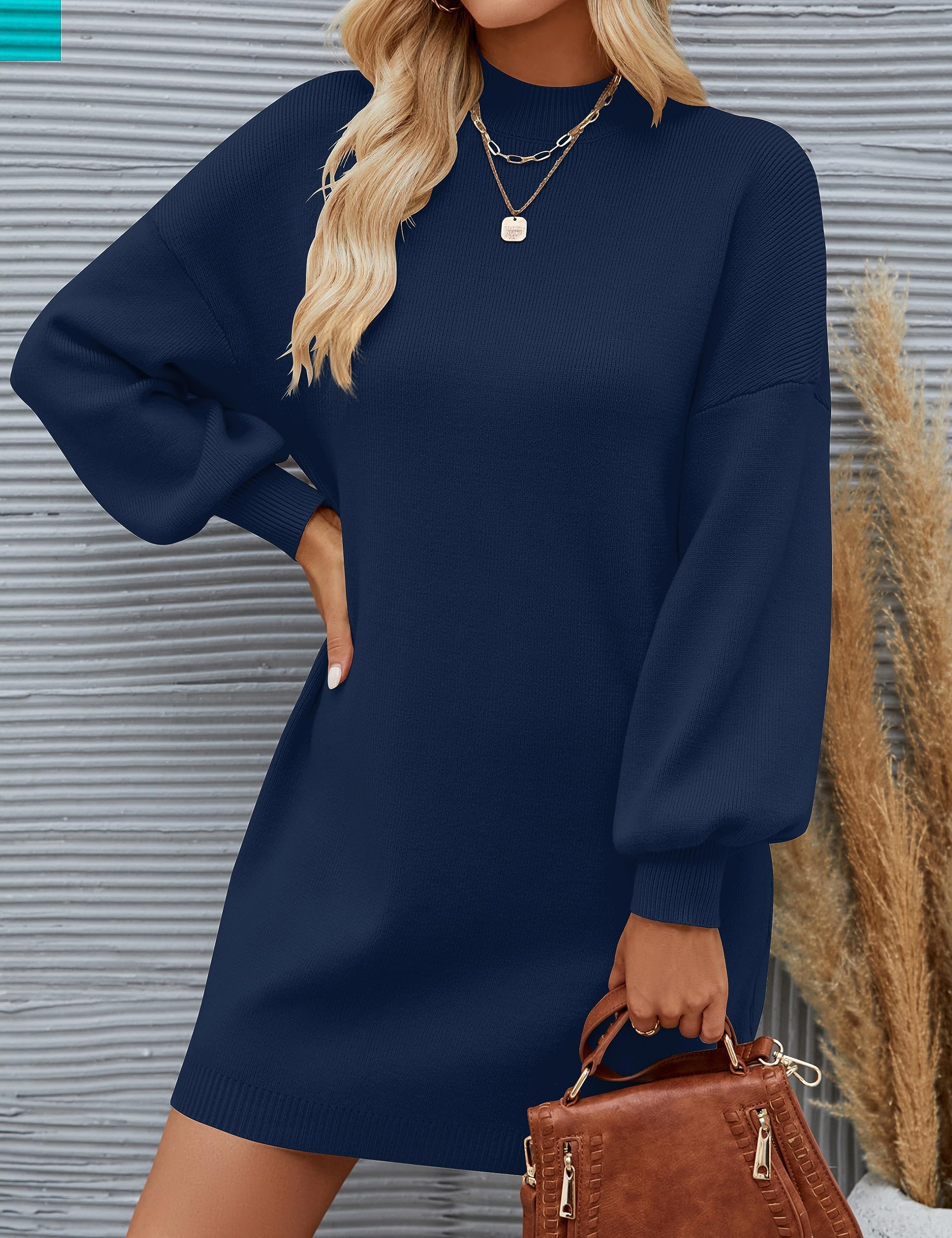 Sweater dresses for women 2025, mini dresses for women, fall sweater dress, lantern long sleeve dress, ribbed knit dress, mock neck, loose fit, classic solid color, above knee length, slouchy and baggy style, maternity dress, winter dress, cocktail party dress