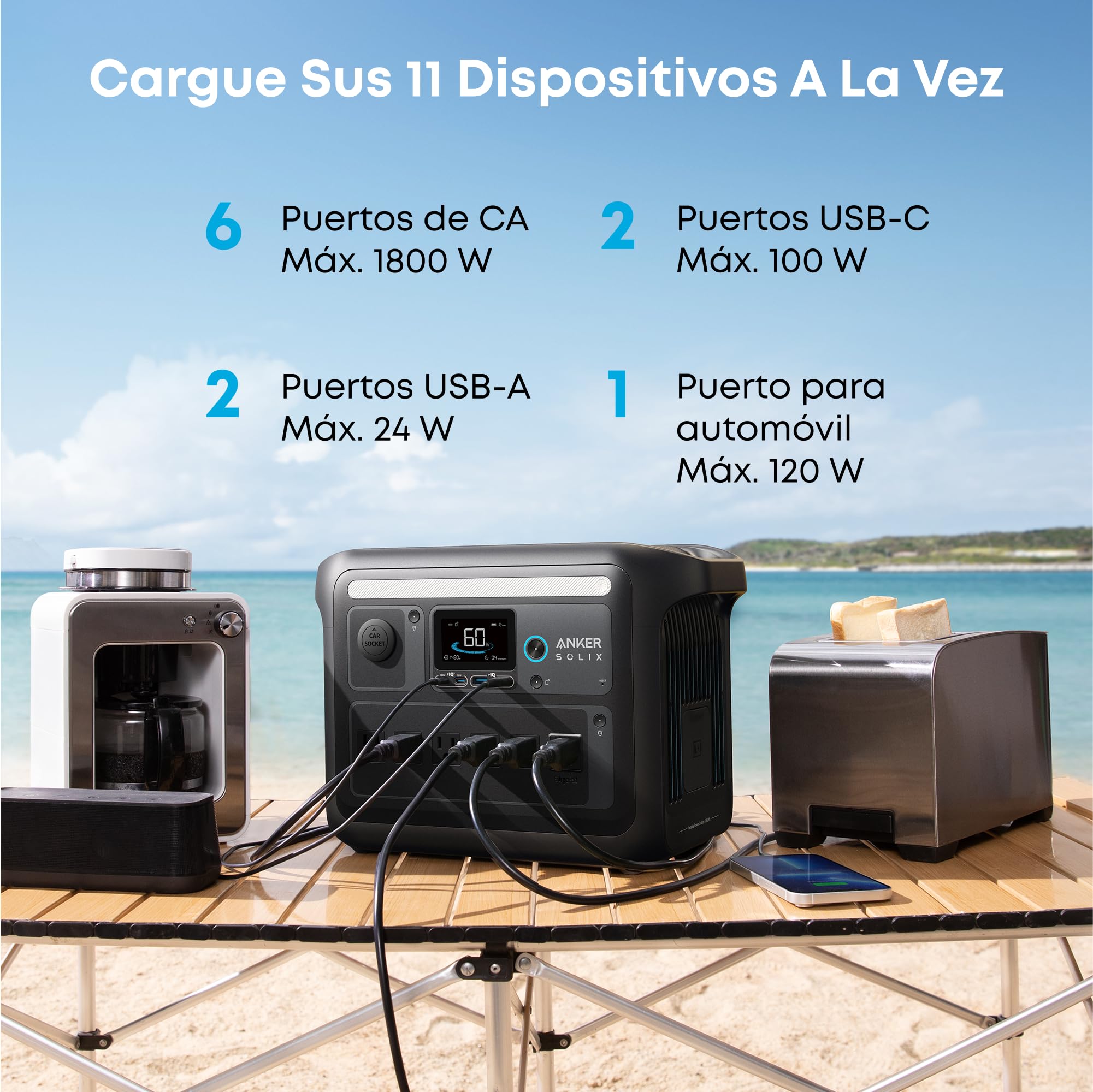 Powerhouse Versatility: The Anker SOLIX C1000's SurgePad technology delivers a massive 2400W output, enabling 99% of appliances to be powered through 11 versatile ports, providing unparalleled compatibility and capacity for RVs and Outdoor Camping.