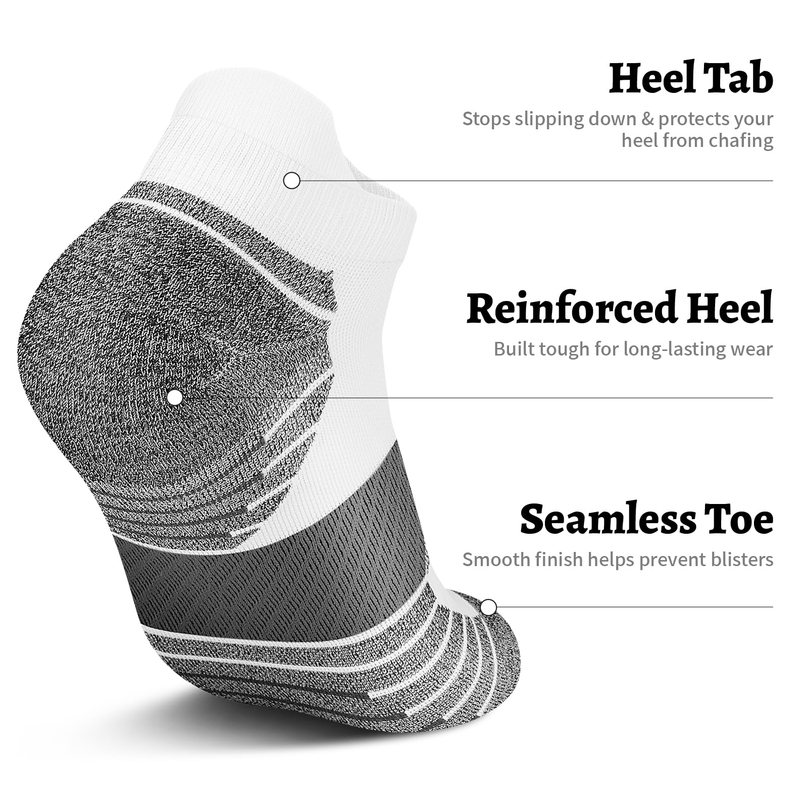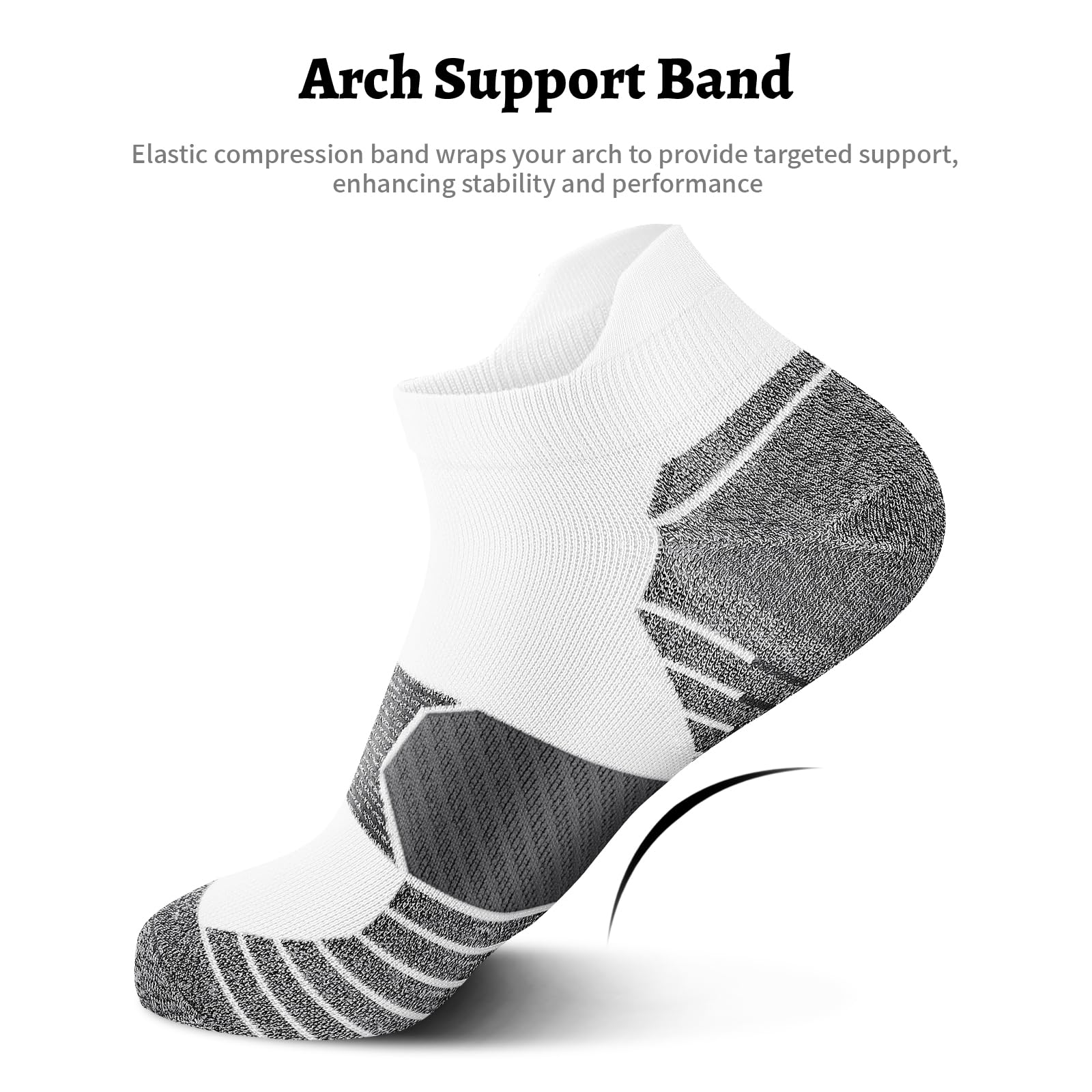 [ARCH SUPPORT & NO SLIP]: These women's running socks feature a circular elastic compression band design at the arch, providing comfortable and snug support for the feet during running, fitness, and walking. Heel tab and elastic cuffs firmly secure women's ankle socks in place, preventing prevents socks from slipping and blisters from forming