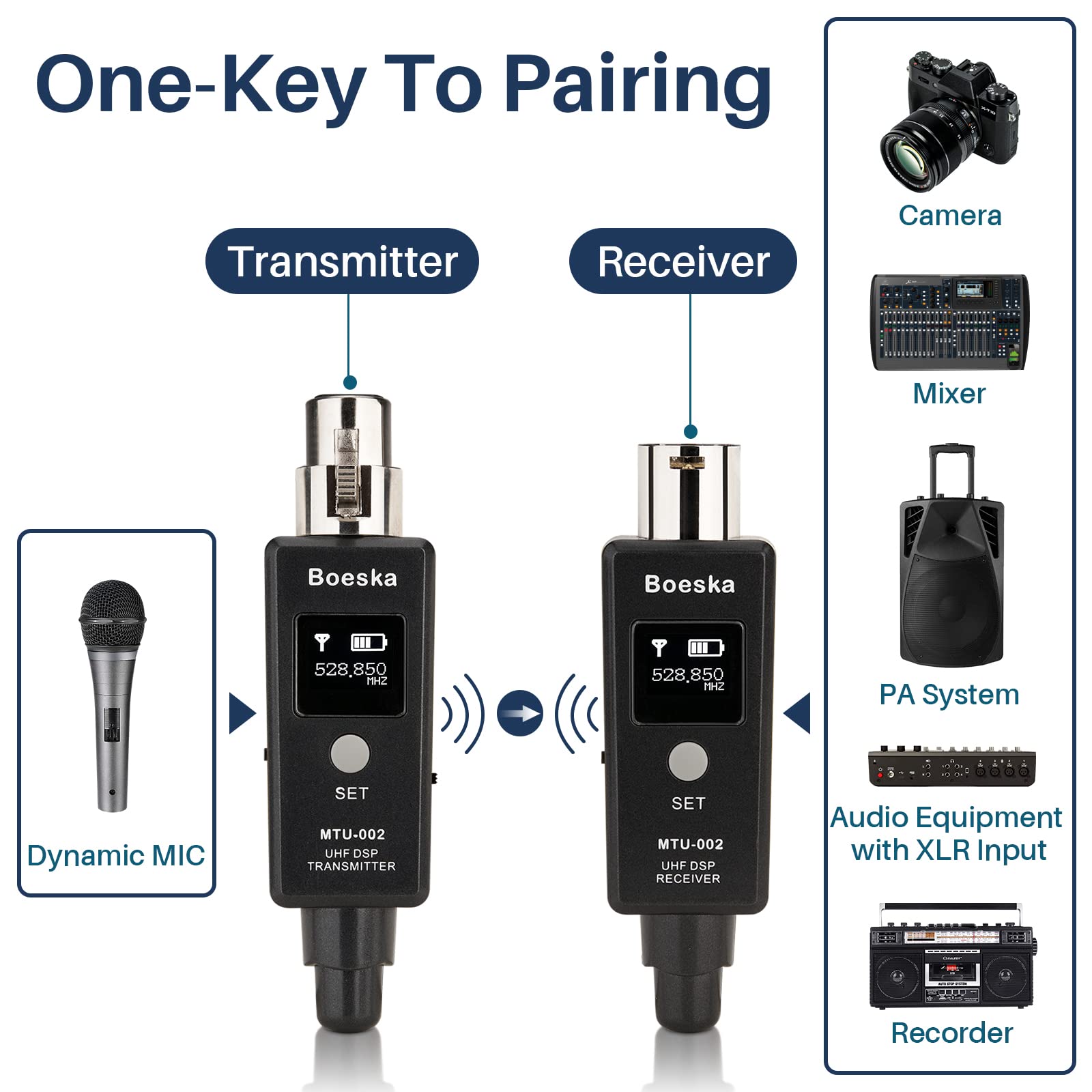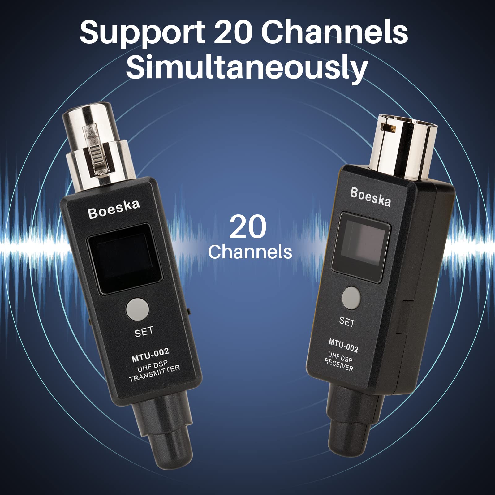 Support Multiple Adapter Pairing: A maximum support of 10 sets of wireless XLR receiver and transmitter systems simultaneously. And it can connect to 20 channels at the same time to ensuring each system operates on distinct channels