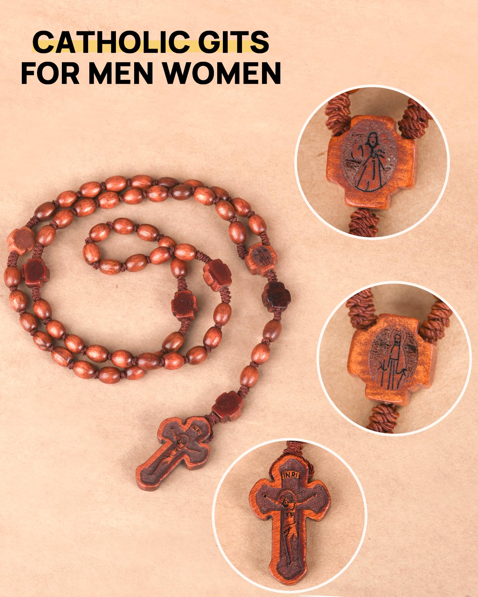 【High quality material】Catholic rosary beads are handmade from high quality hardwood to bring peace and protection to you and your loved ones