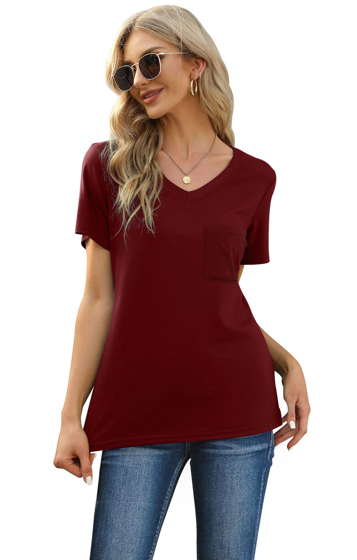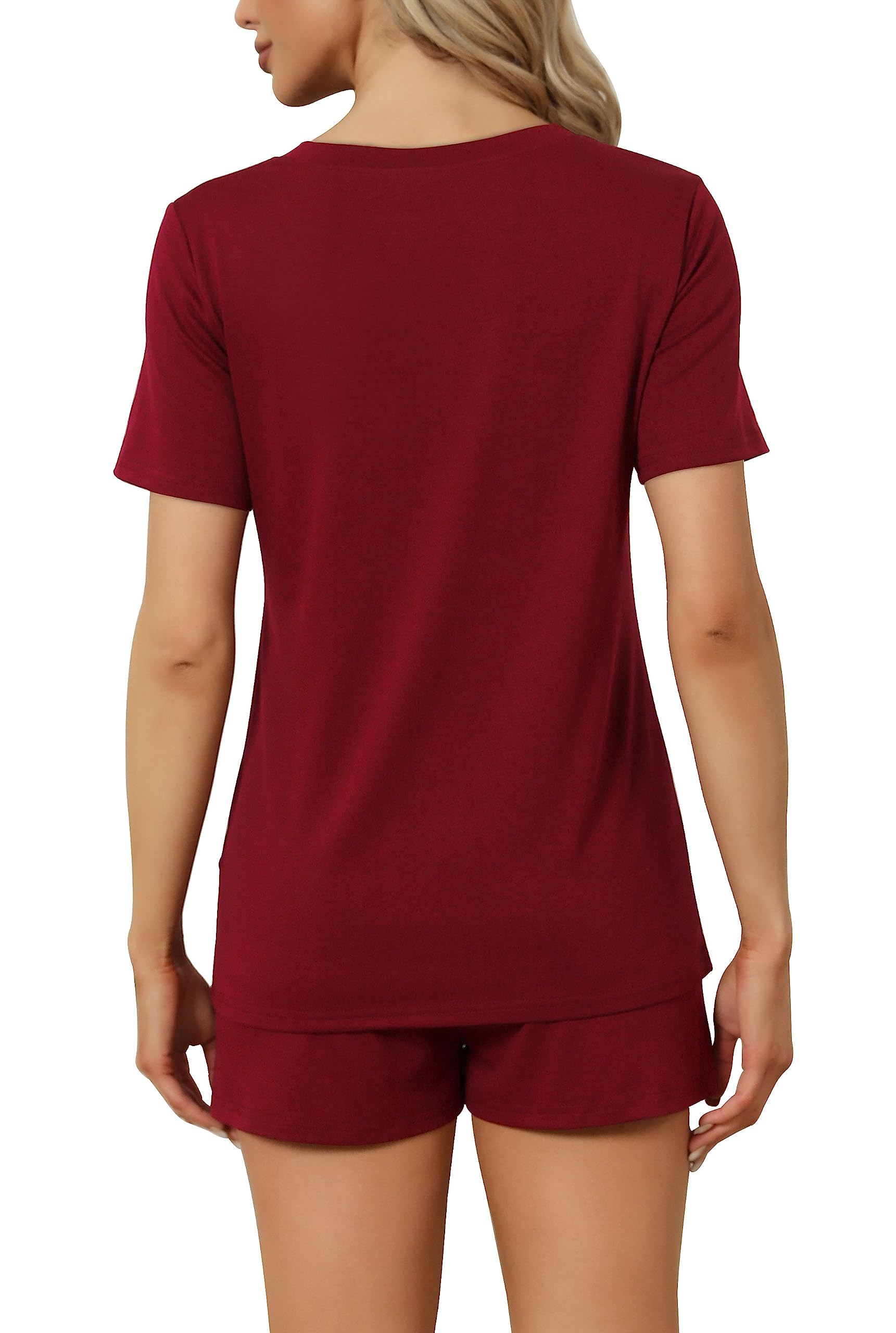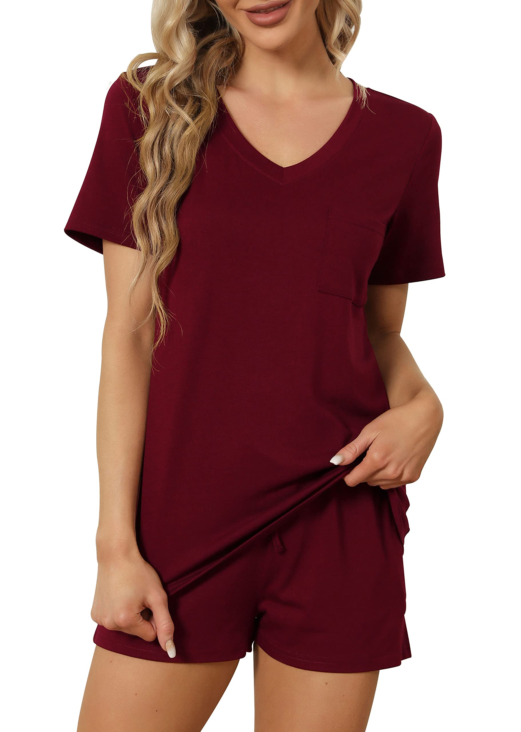 FEATURE --- The package including 1 x short sleeve t-shirt and 1 x short. The top has classic v neckline and a pocket. The short has elastic drawstring and side pockets. The cute top is perfectly complemented by shorts. Casual and sexy in daily life.