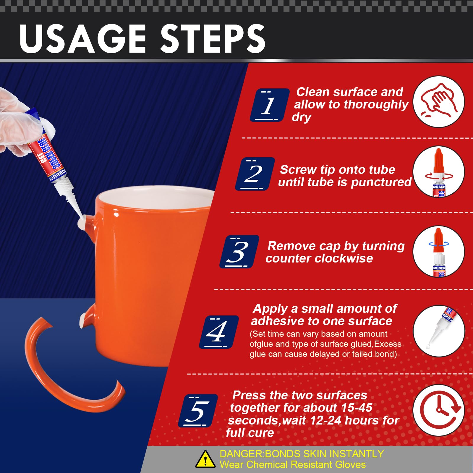 【Trusted Quality】Our Super Glue Gel Made with industrial-strength cyanoacrylate, wether for home, office, or workshop, it delivers professional-grade adhesion. We stand by our product—if you’re not satisfied, contact us for a quick solution within 24 hours!