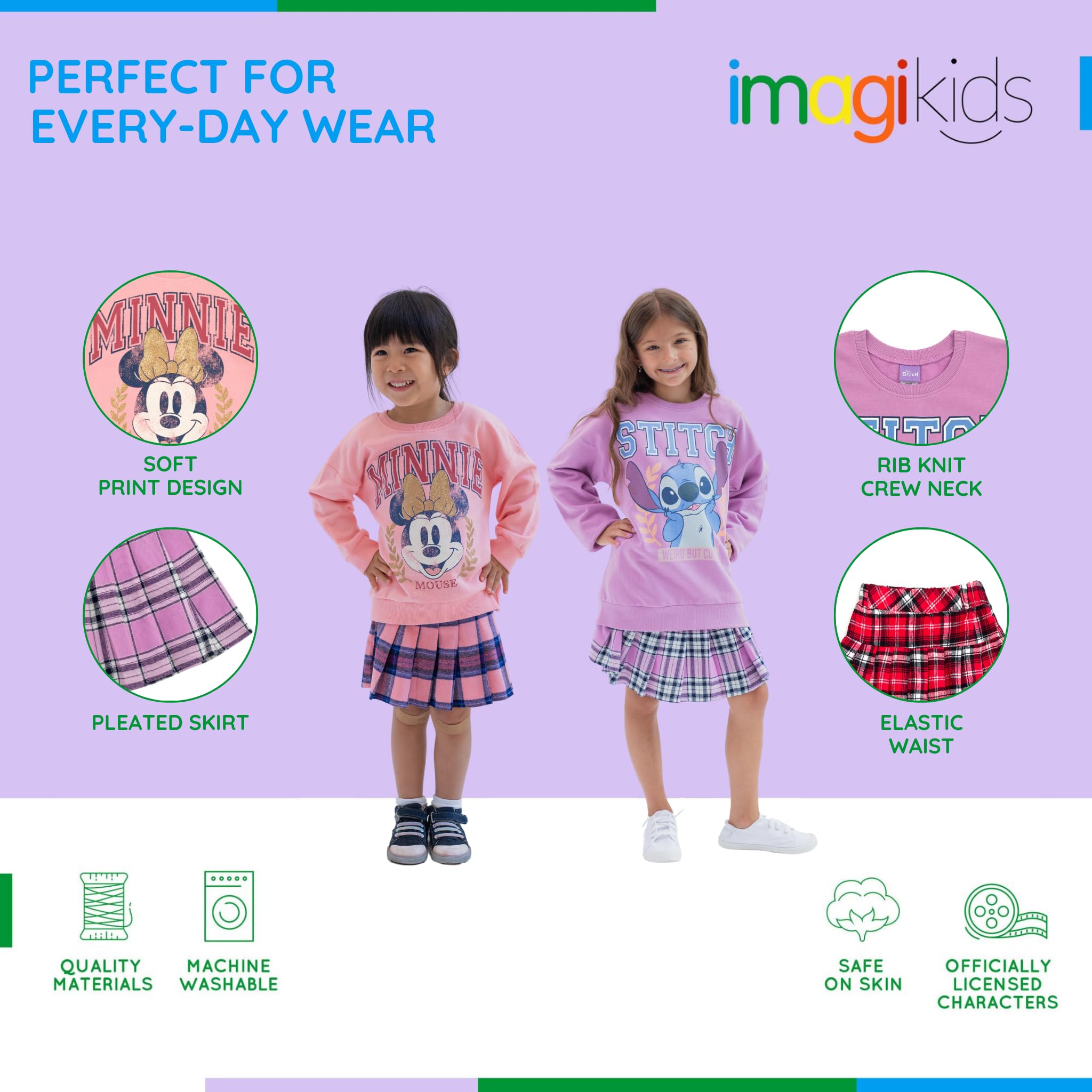 Officially licensed Disney Minnie Mouse toddler girls long sleeve graphic sweatshirt and skirt