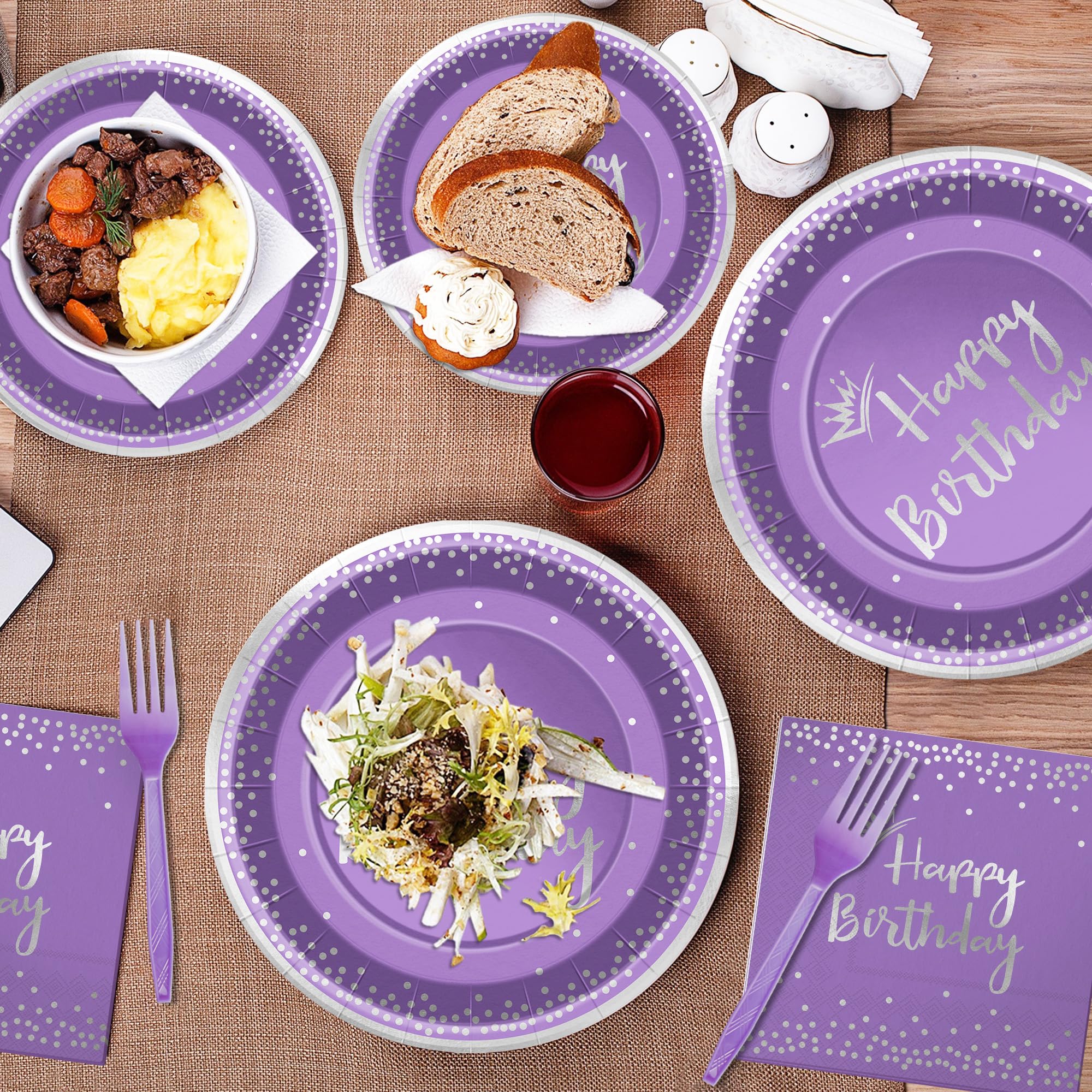 Exquisite Design:This cutlery set comes in an elegant purple color,giving it an air of nobility and mystery. ,while the silver dotted and “Happy Birthday” pattern livens up the tableware,and elegant atmosphere for your birthday celebration.