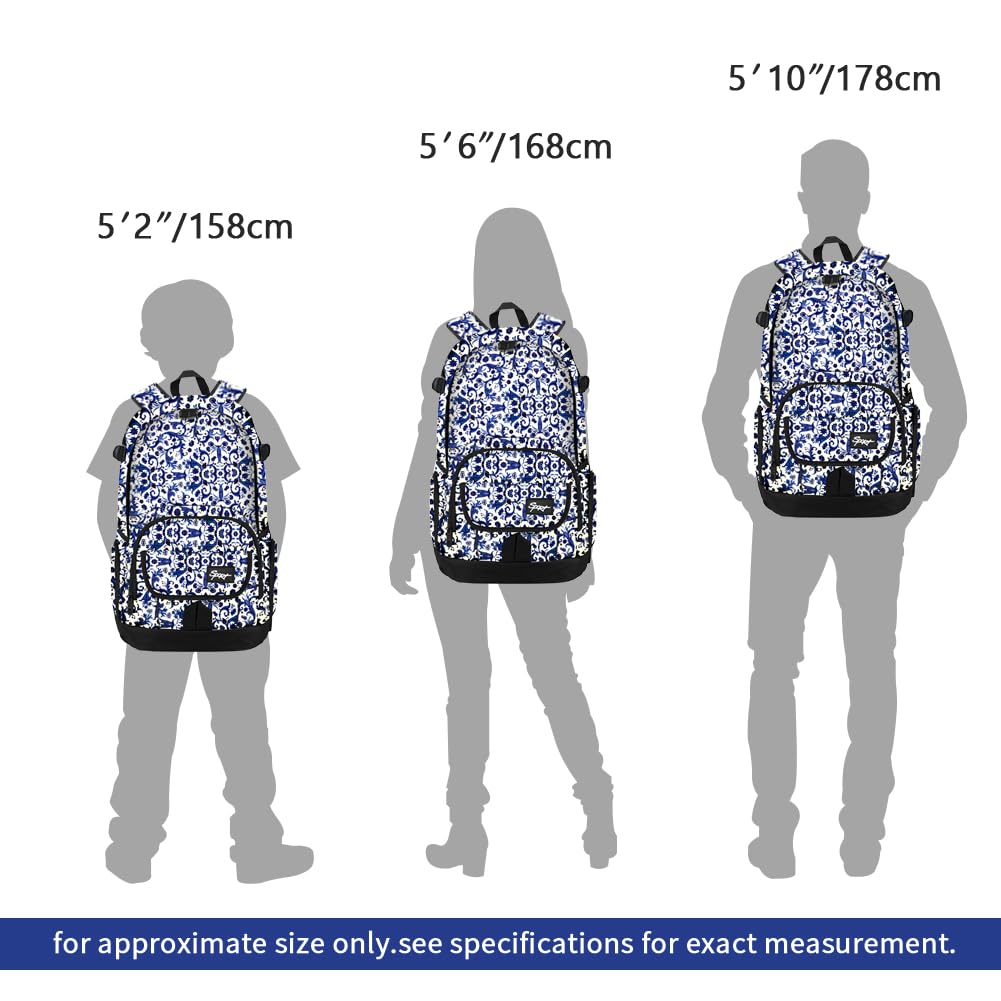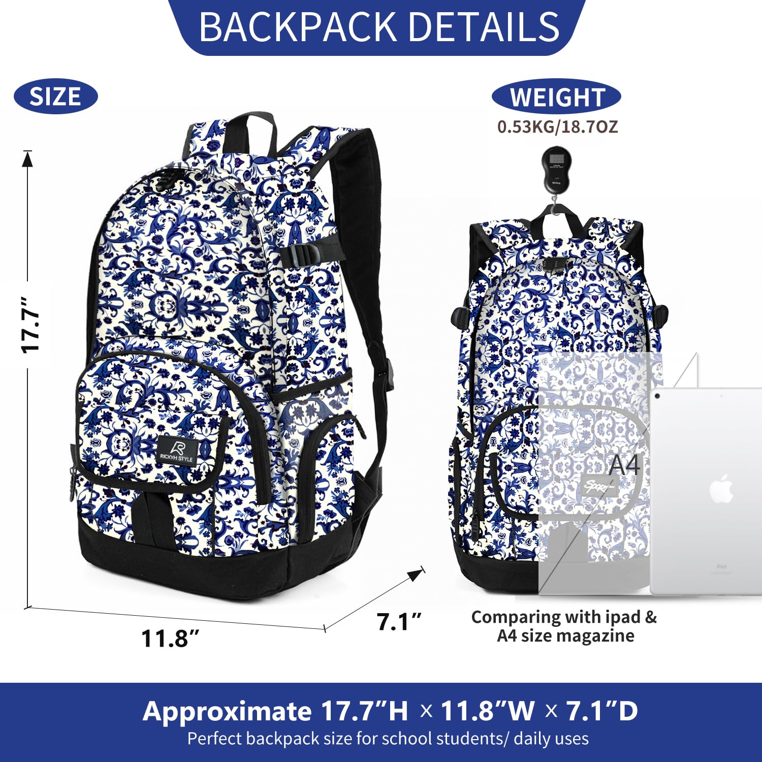 Description Flexible and ample storage space with scientific and reasonable layout design in Ricky-H’s conveniently portable bag makes getting out the door in the morning much easier. Multipockets layout allows small items (eg. Phone, pens, keys, chargers, power bank, sunglasses, ect.) and big items (eg. Laptop, A4 binders, textbooks, notebook, lunch box, sweater, towel, ect.) being organized neatly. -Suitable Occasion: School, Travel, Camping, Hiking, Gym, Office, Gift, Versatile. Whether to cater your day-to-day organizing basis or your "extra-curricular" uses, our backpack is versatile enough for many use, to be a book bag during the week and a travel backpack on weekends. Great choice as school bookbag or daypack, overnight backpack. Or even as diaper bag. -Applicable People: Men, Women; College/University Campus Students, High school, Middle school, Elementary, Primary school boys & girls; Parents, ect.)-Comfort with featuring ergonomic designed adjustable padded reinforced shoulder straps, makes the backpack all day use as a breeze. -High-quality, strong, long lasting nylon fabric builds our sturdy and solid backpack with great performance on water-resistance, anti- striking and anti-scratching. -Twin metal zippers with fabric flaps over to keep water out of the backpack and last much longer than plastic ones. Easy at opening and closing the backpack.Double stitching at stress points adds valuable security to seams, handles, and straps, enhancing the durability. And additional top handle provides extra help while lifting or moving the backpack. *Notes:1. Differences of 0.5-1 inch may occur due to manual measurement. 3.Item color displayed in photos may vary slightly from the actual product due to monitor color settings.