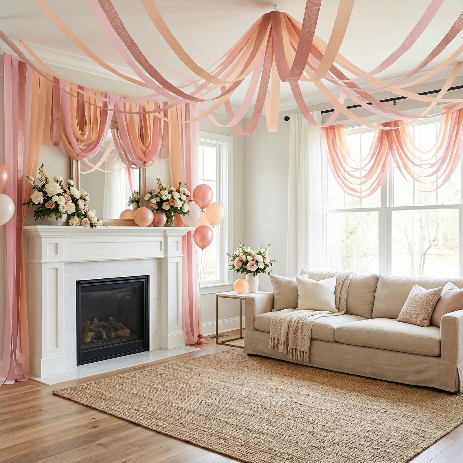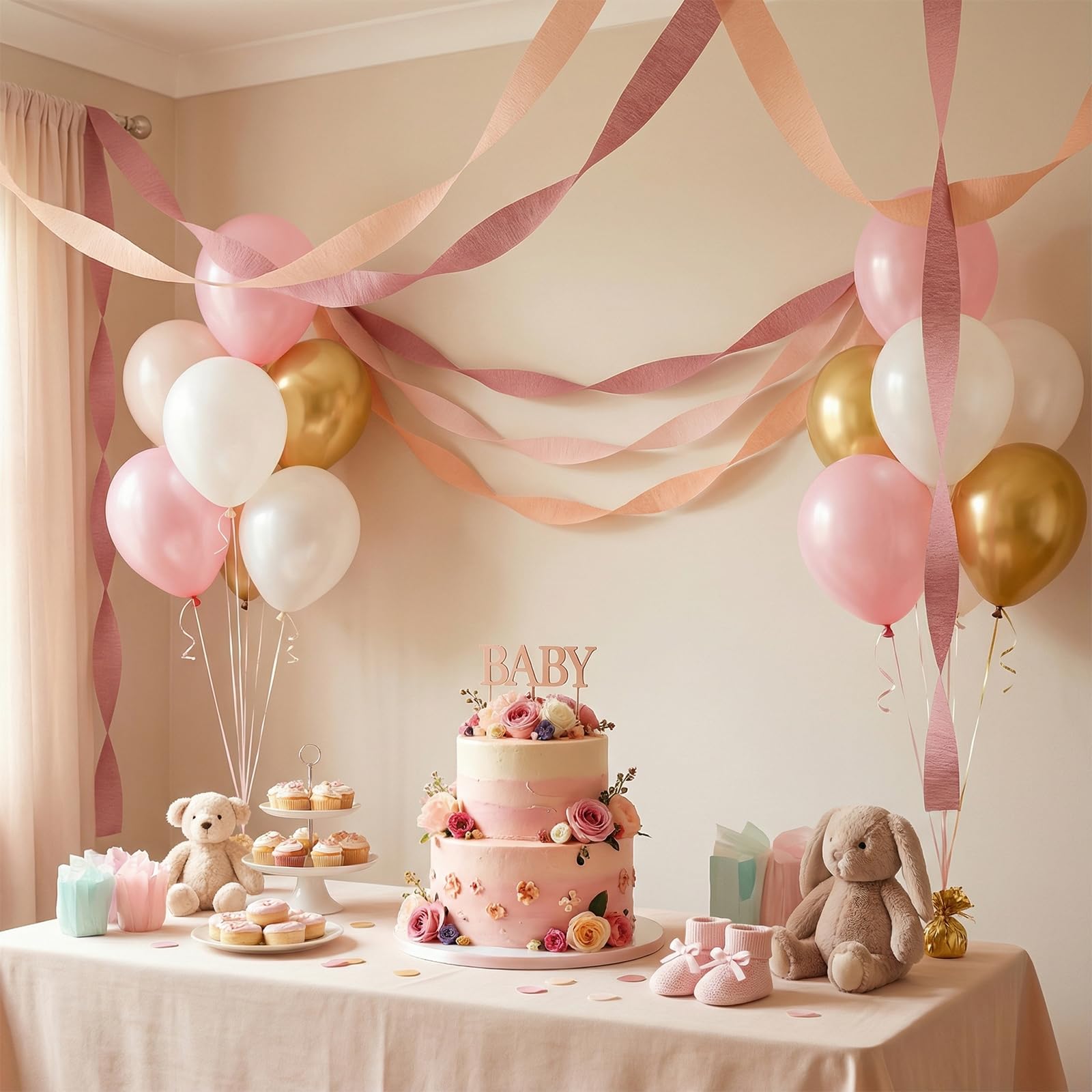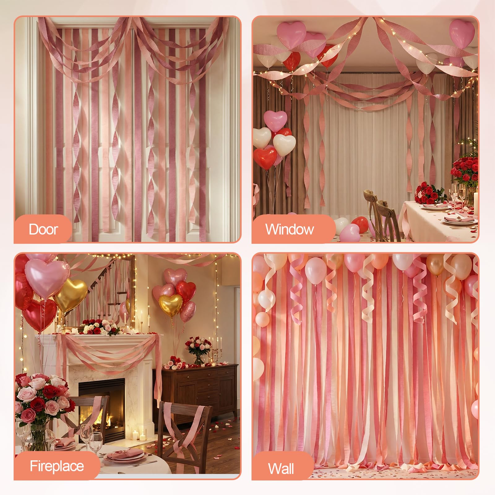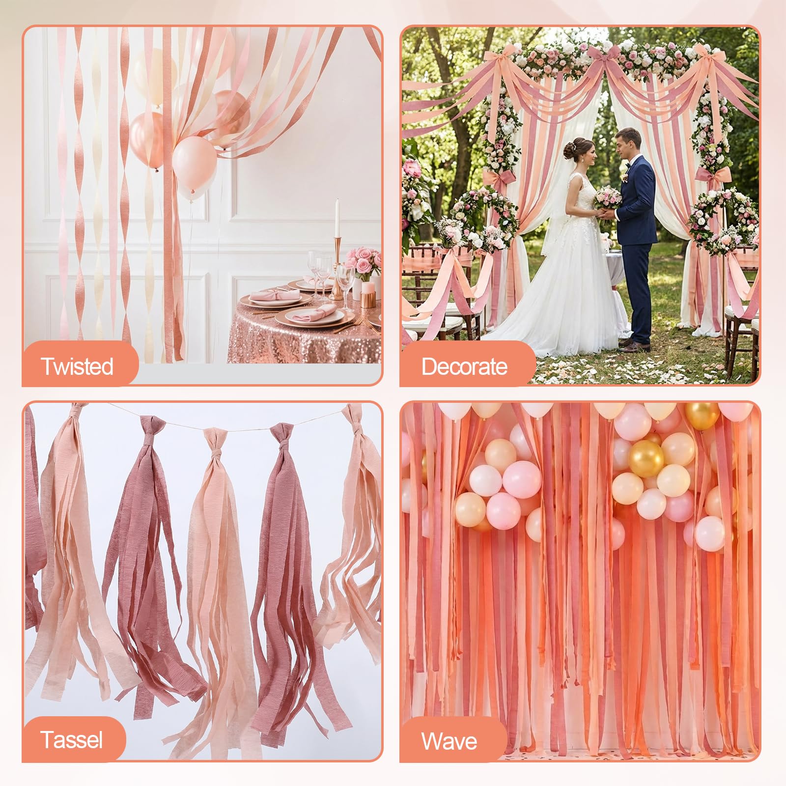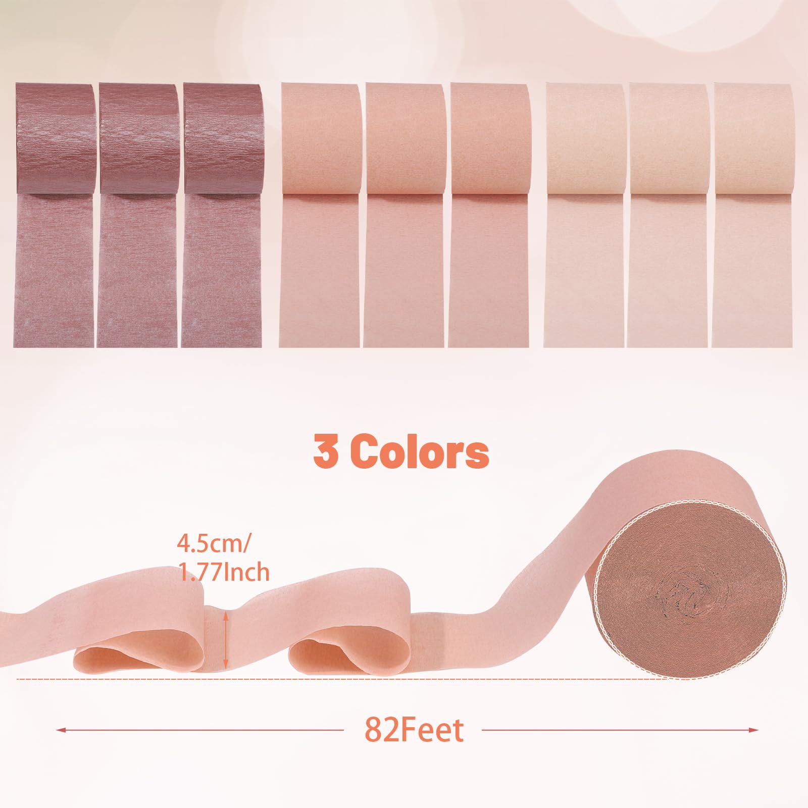 【Packegs Included】You will get 9 rolls of rose gold baby pink crepe paper streamers, each roll measures 82 feet long and 1.77 inch wide.