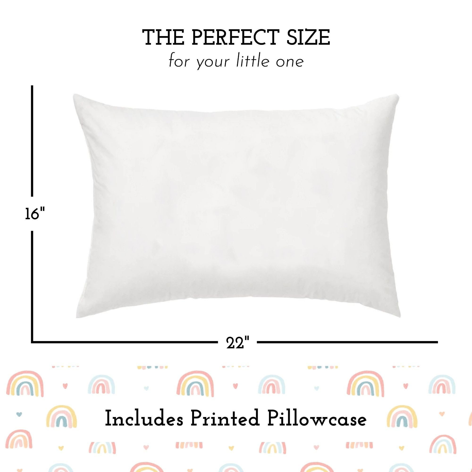 Youth Pillow with Pillowcase 16x22: This is the perfect pillow for your not-so-little kid! In between our toddler pillow and a standard pillow, our 16" X 22" youth pillow is the best pillow for children 4+, or toddlers that need something a bit larger! Comes in colorful designs that appeal to kids.