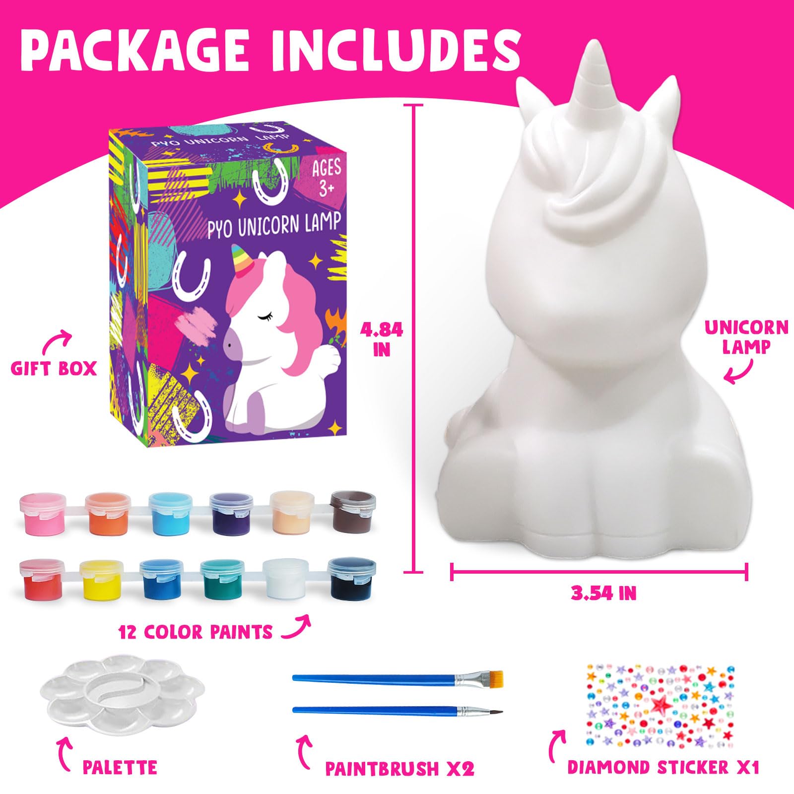 【Creative Unicorn Craft Fun】Dive into the world of creativity with our Paint Your Own Unicorn Lamp kit! This set includes 1 unicorn lamp, 12 paint colors, 2 brushes, a palette and sticker. Perfect for unicorn art kids and crafts for teens, this kit promises hours of fun and creativity for arts and crafts enthusiasts aged 4-12.